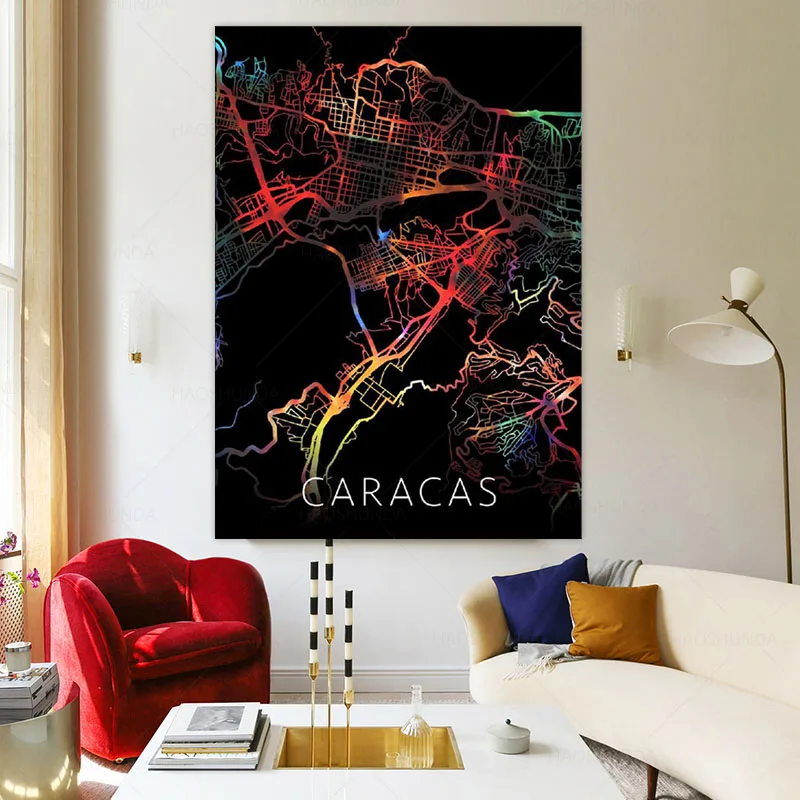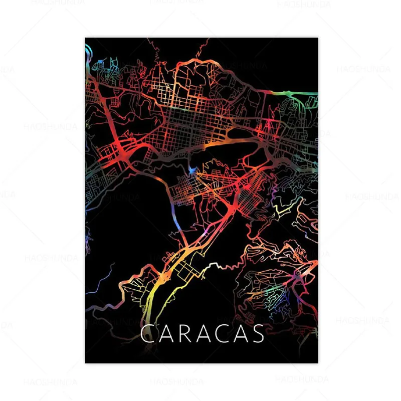 Акварельные черные карты города Венесуэла, Каракас, холст, настенный художественный принт, современный плакат, настенные картины, рамка для декора гостиной