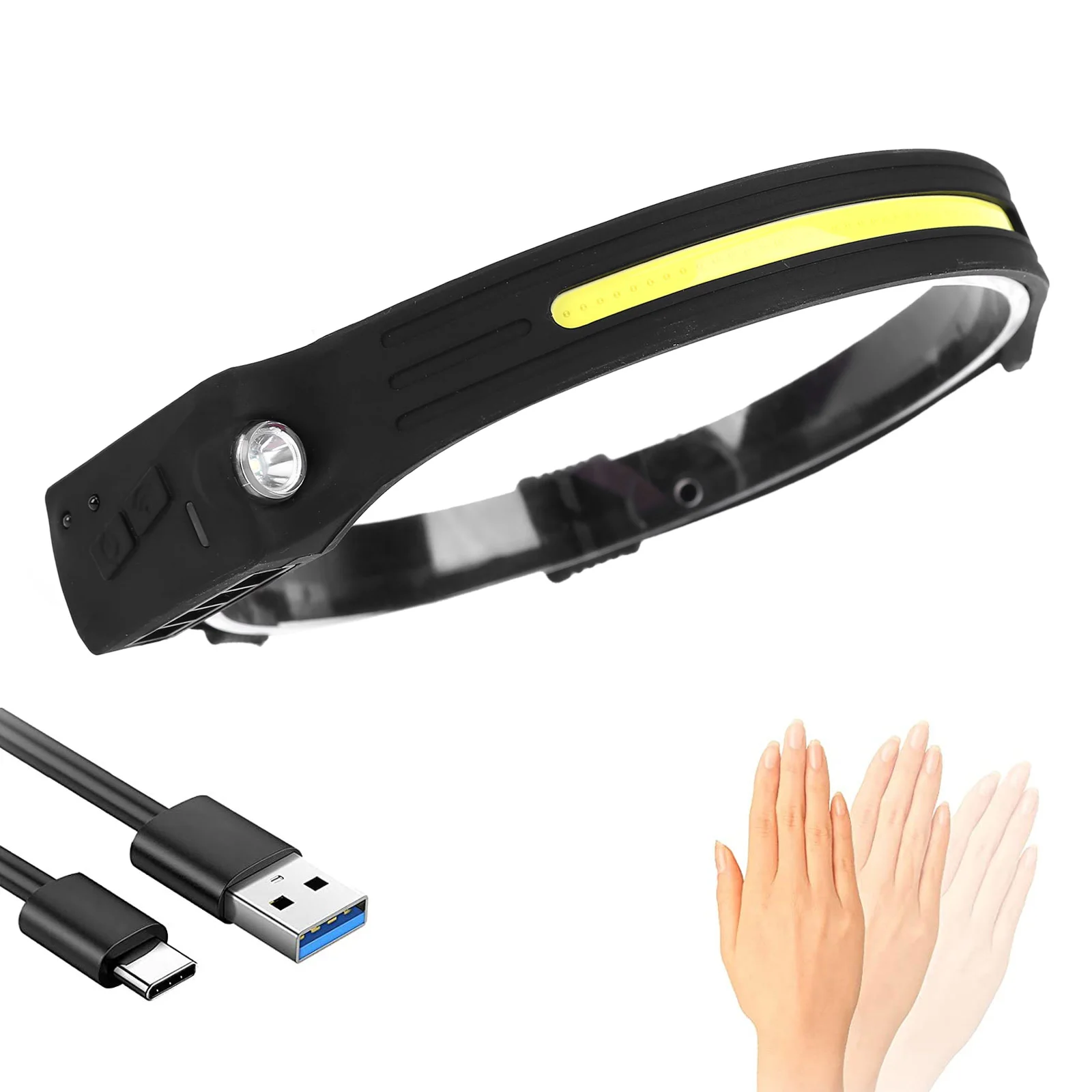 Налобный фонарь с датчиком, светодиодный головной фонарь со встроенным аккумулятором и зарядкой по USB, для майнинга, кемпинга, походов