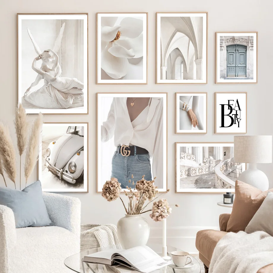 Модная женская Лилия Ретро машина Минималистичная архитектура настенная живопись холст постеры и принты скандинавский стиль Декор для гостиной