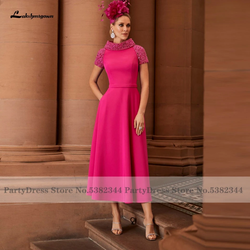 Lakshmigown ярко-Розовое женское атласное платье для матери невесты, кепка с коротким рукавом, платья для свадьбы