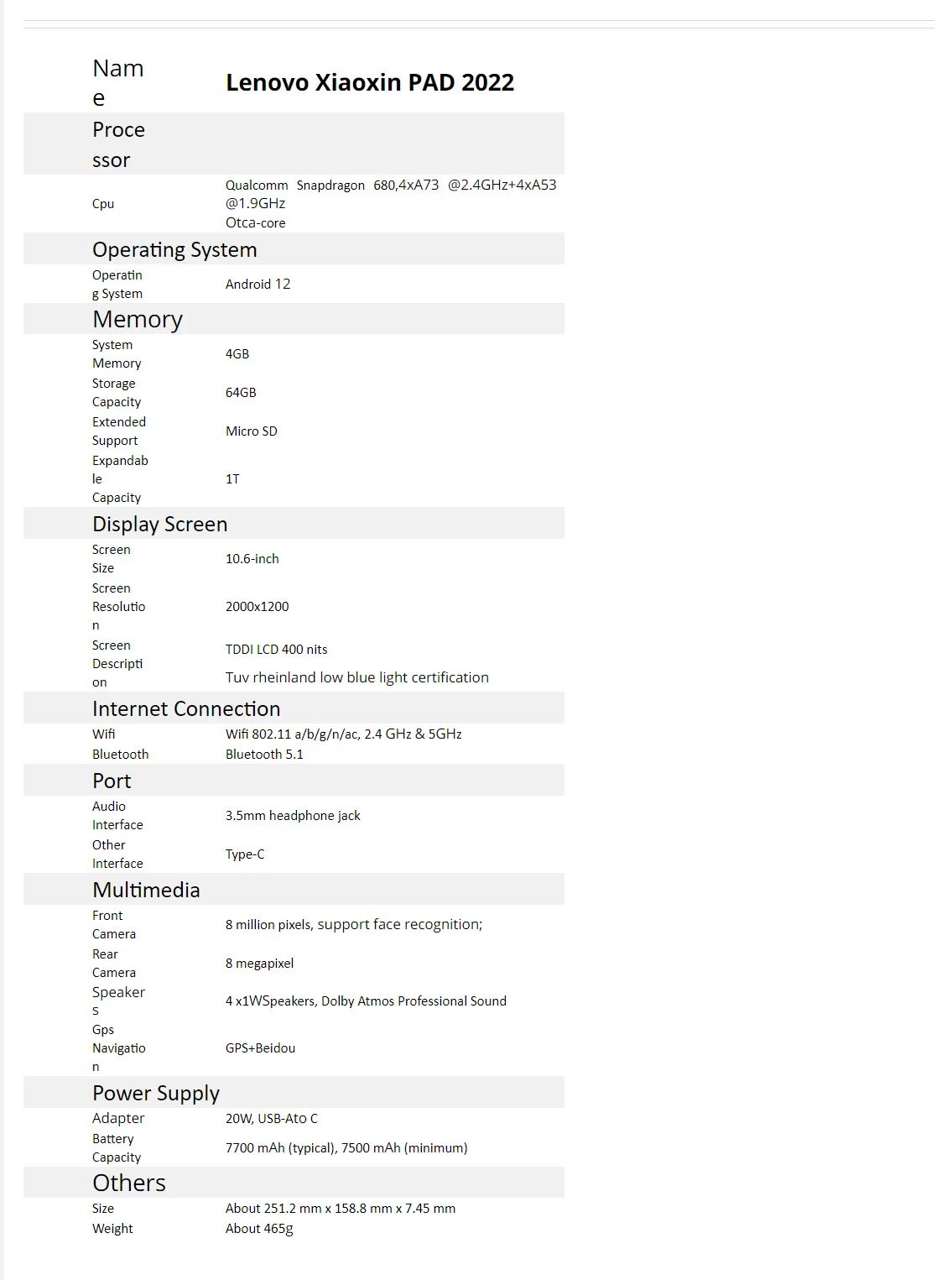Lenovo XiaoXin Pad P11 упаковочный лист