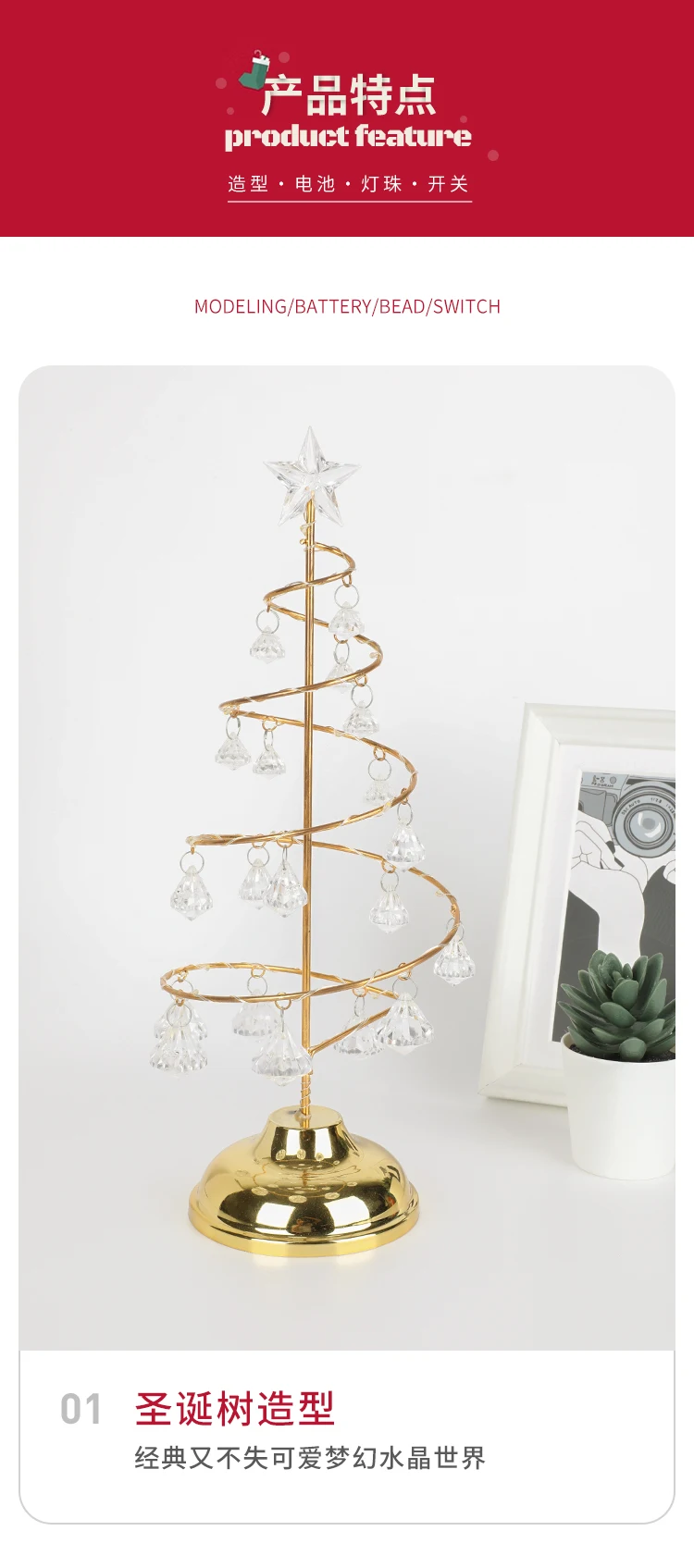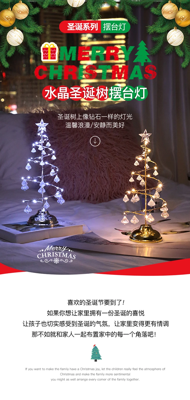 Настольная лампа на рождественскую елку с кристаллами для украшения...