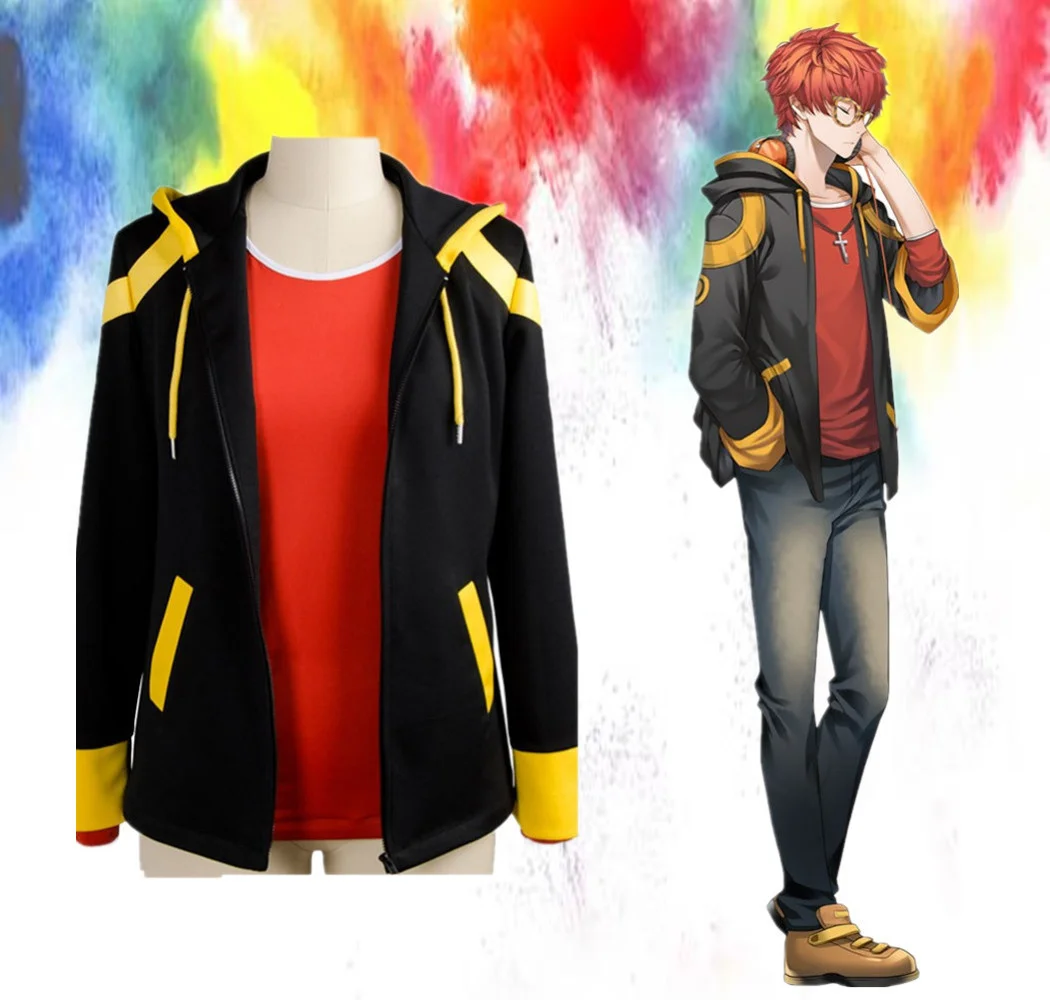 707 костюм для косплея Мистик мессенджер Saeyoung Choi Косплей куртка на молнии Luciel Seven толстовки 707 Красная футболка короткий оранжевый парик