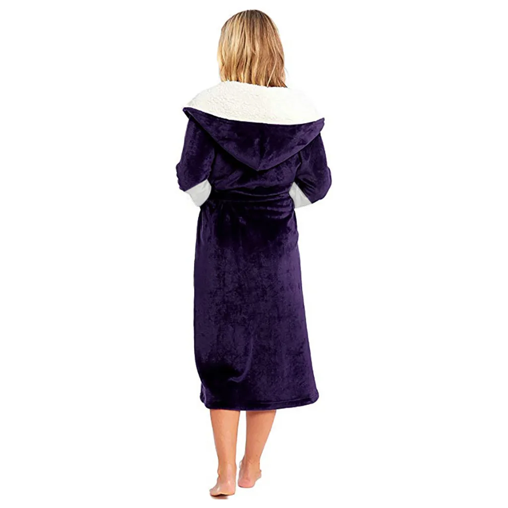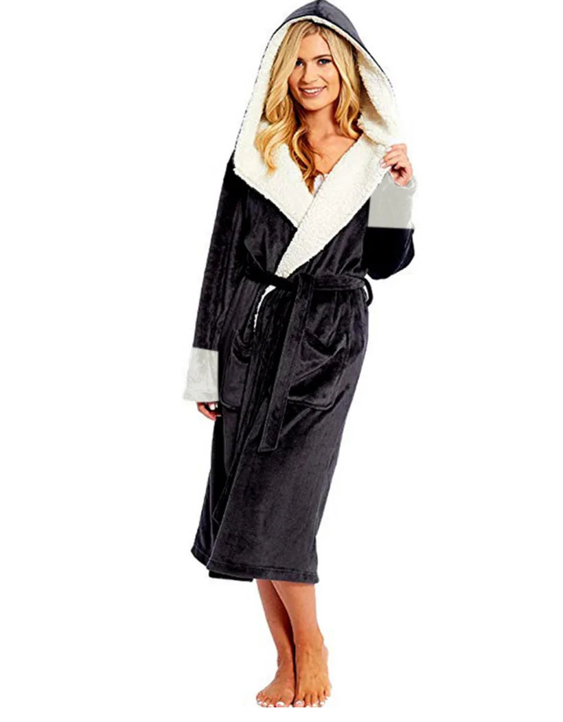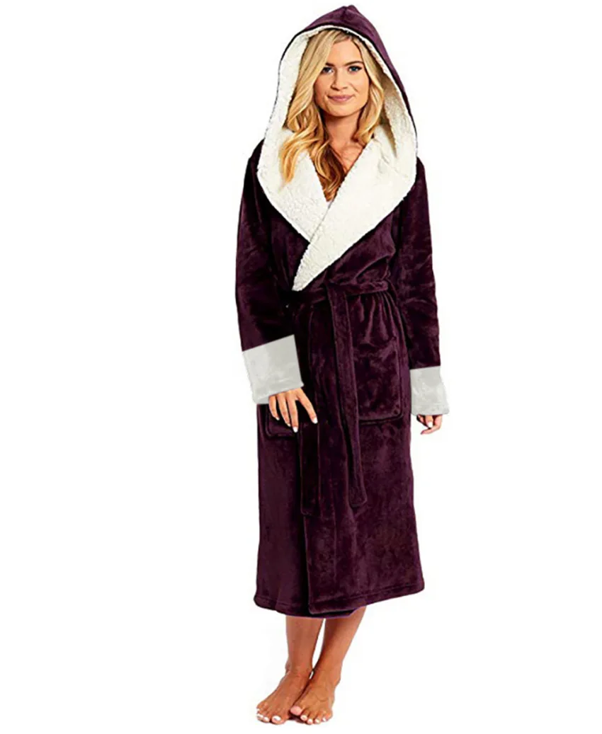 Халат женский зимний флисовый с капюшоном и плюшевой подкладкой