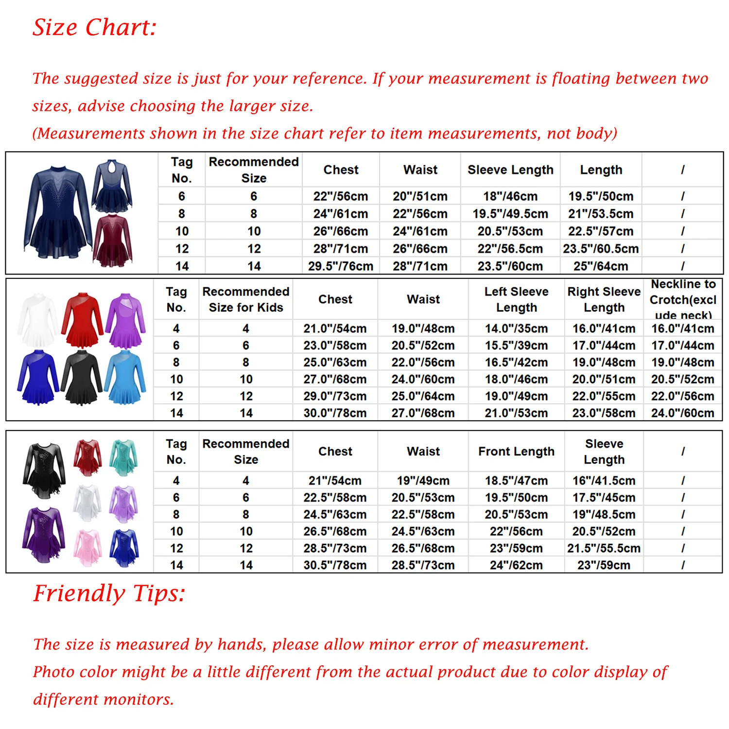 Особенности:Платье для катания на коньках изготовлено из полиэстера, сетчатого и шифонового материала, ручная стирка.Таблица размеров означает возраст для девочек, но только для общего руководства.Сетчатый длинный рукав, круглый воротник, открытая спина с отверстиями и модный стиль пэчворк, сверкающие стразы спереди и сзади.1 слой гофрированной шифоновой юбки прикреплен вокруг талии, трусики подкладка трико платье для повышения уверенности и мастерства.Подходит для занятий танцами, гимнастическое упражнение, выступления на сцене, соревнований на коньках, фотосессий, дней рождения и т. д.