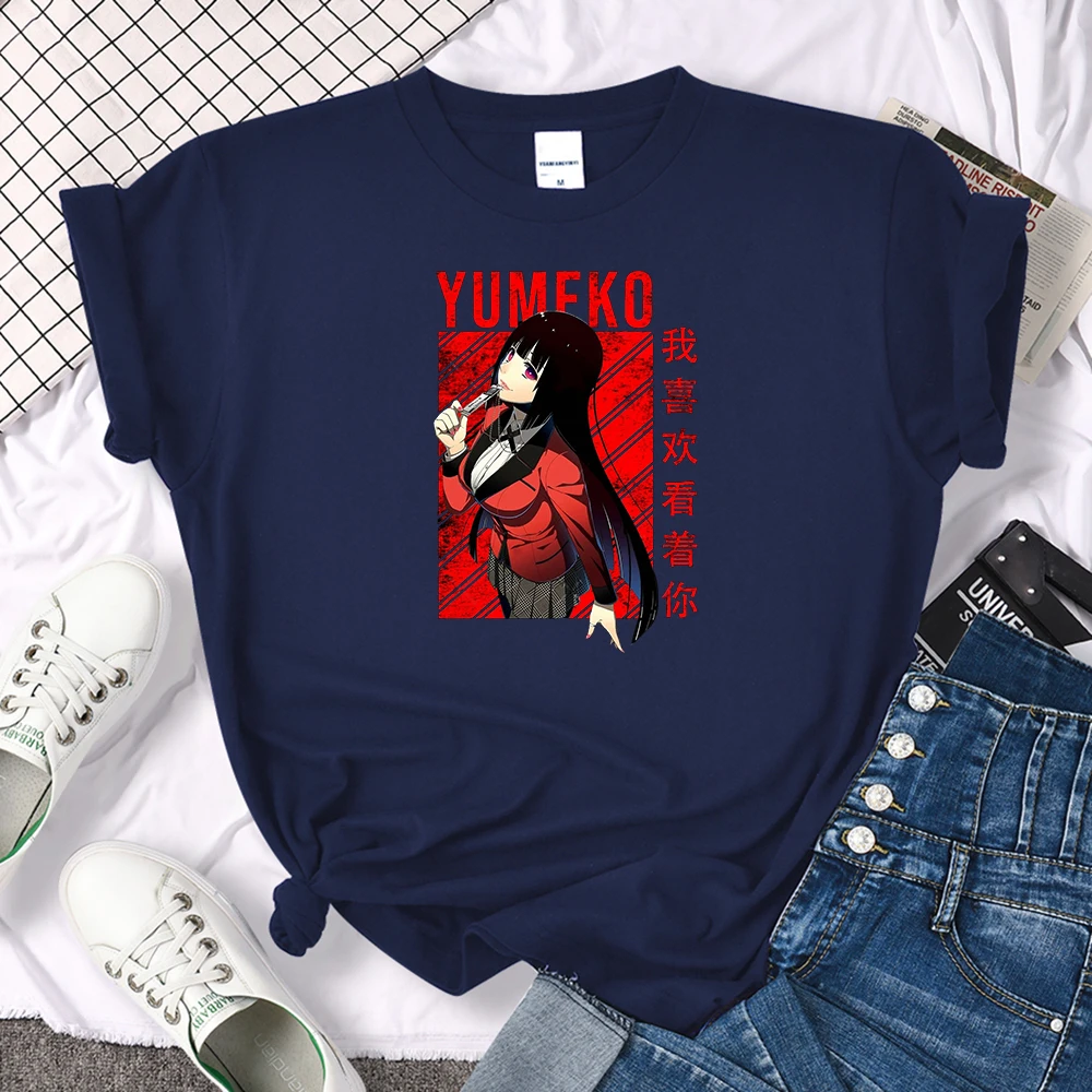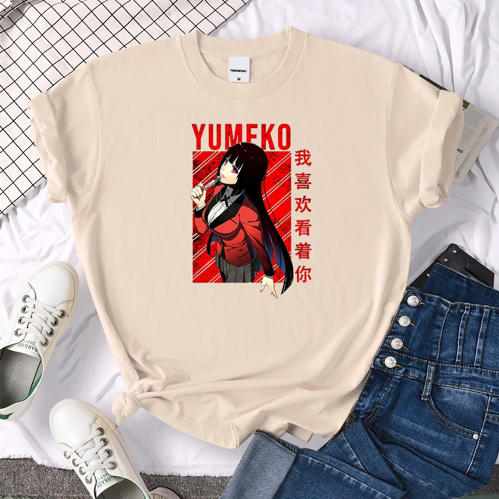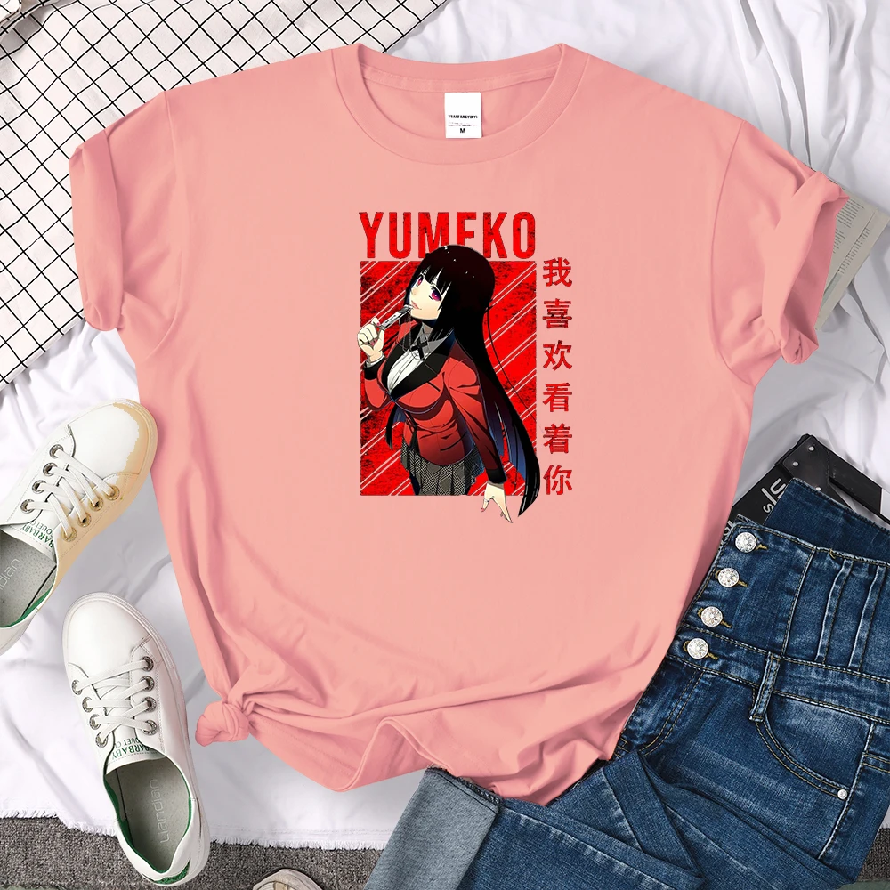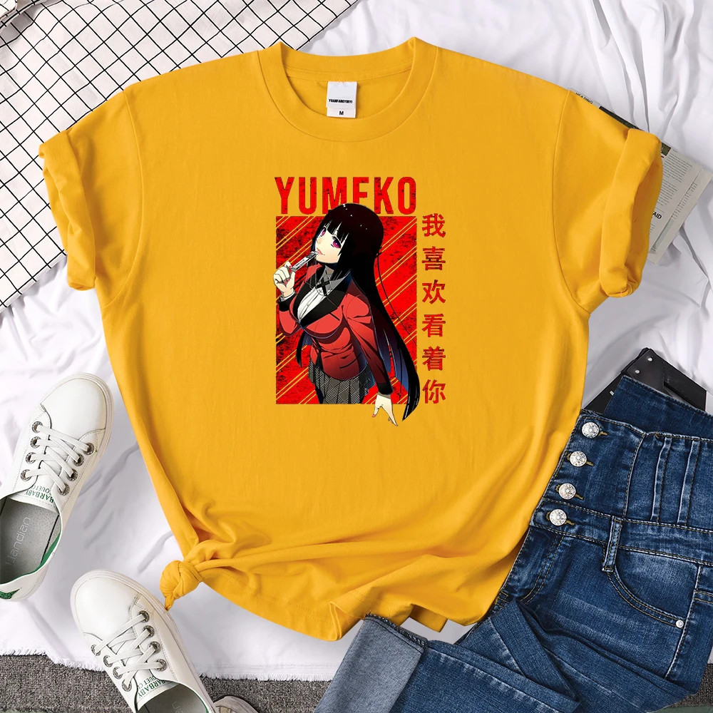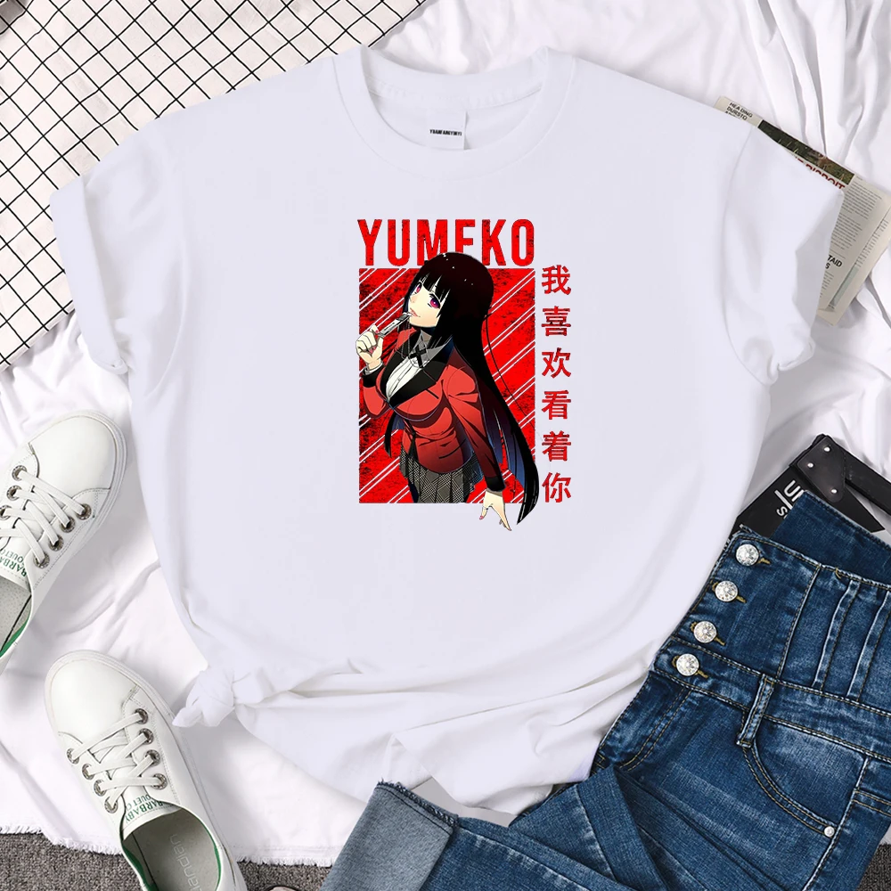 Женская футболка Jabami Yumeko, топ с принтом аниме Kakegurui, женская свободная футболка большого размера, женская тонкая футболка в японском стиле Harajukua