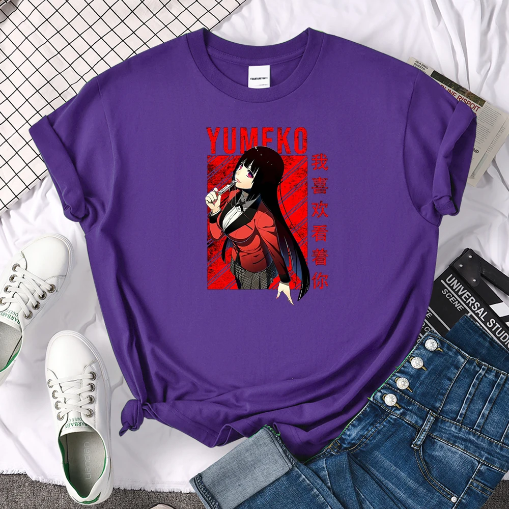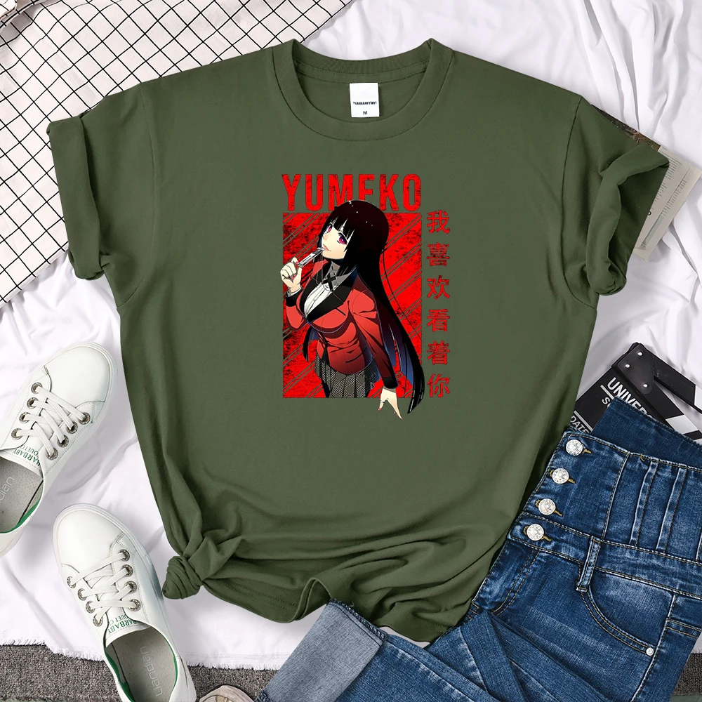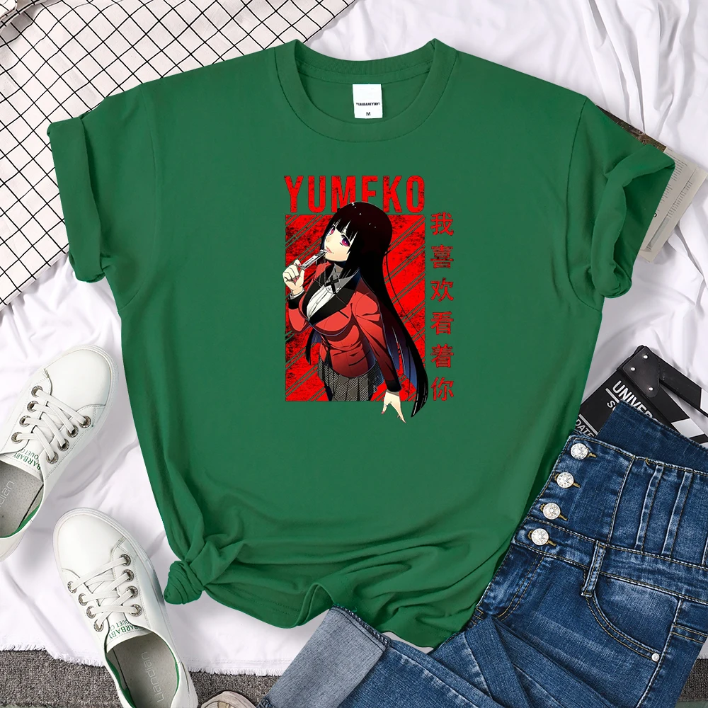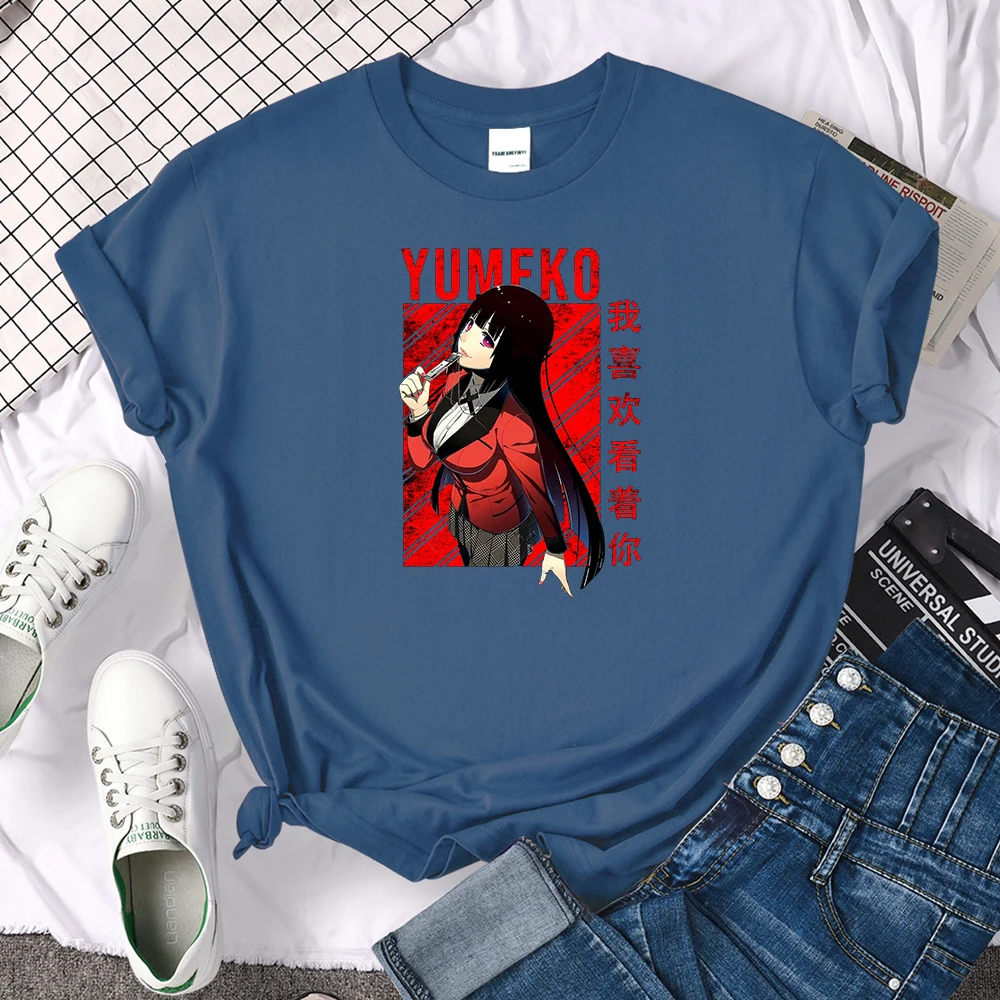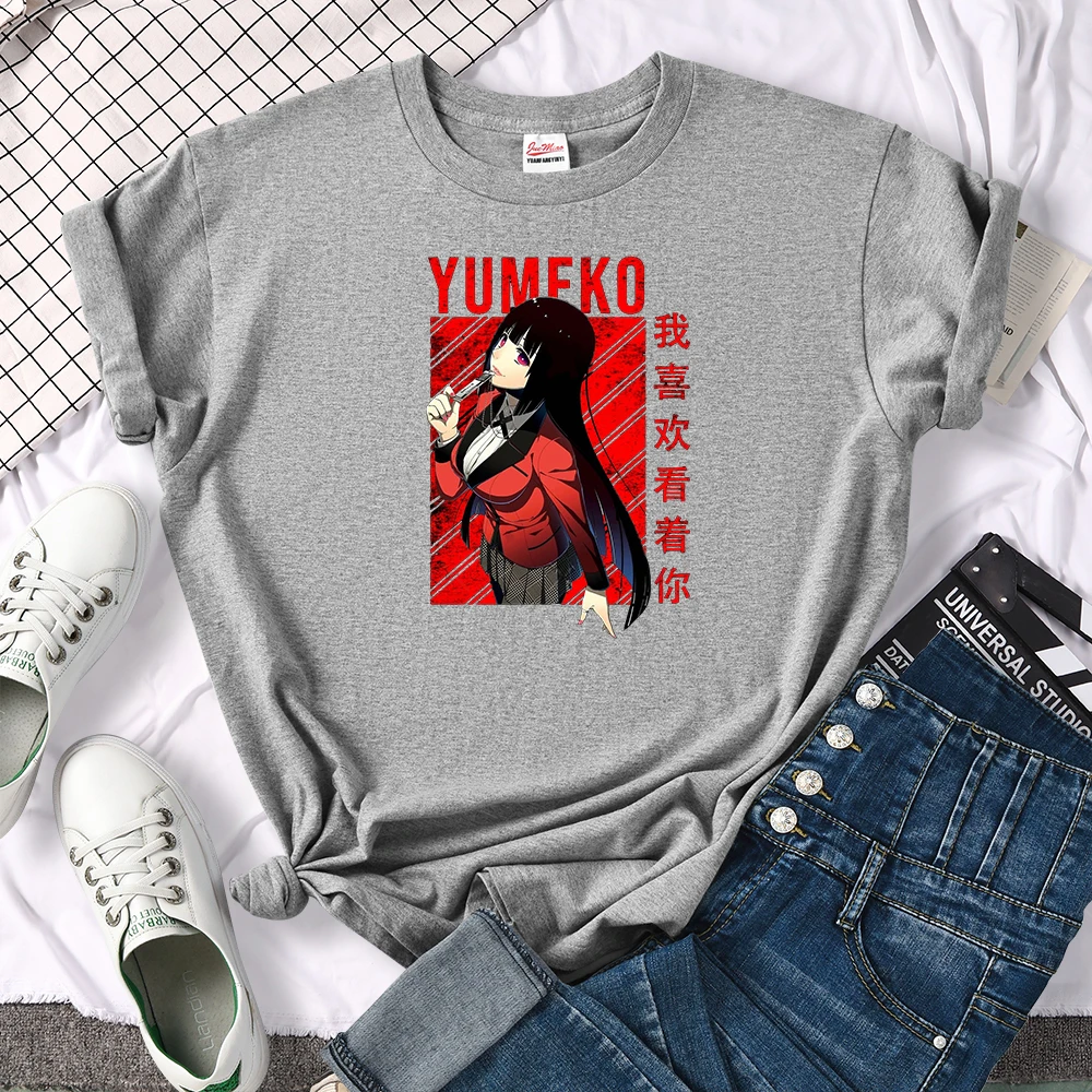 Женская футболка Jabami Yumeko, топ с принтом аниме Kakegurui, женская свободная футболка большого размера, женская тонкая футболка в японском стиле Harajukua