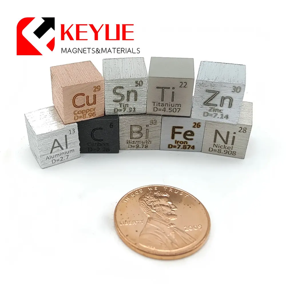 Набор Металлических Кубиков 9 шт., кубики плотности 10 мм до 99.99% чистоты Cu, титан C, никель, железо, медь, цинк Al Sn