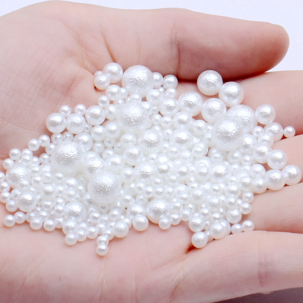 Смешанные размеры 400 шт белый цвет без отверстия морщин жемчуг круглый имитация бисера идеально подходит для дизайна свадебной одежды DIY чехол для телефона