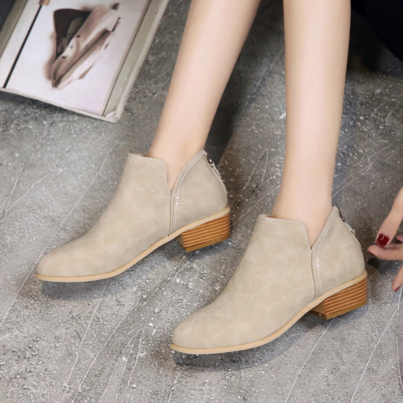 Осенние женские ботильоны из искусственной кожи, повседневные корот...