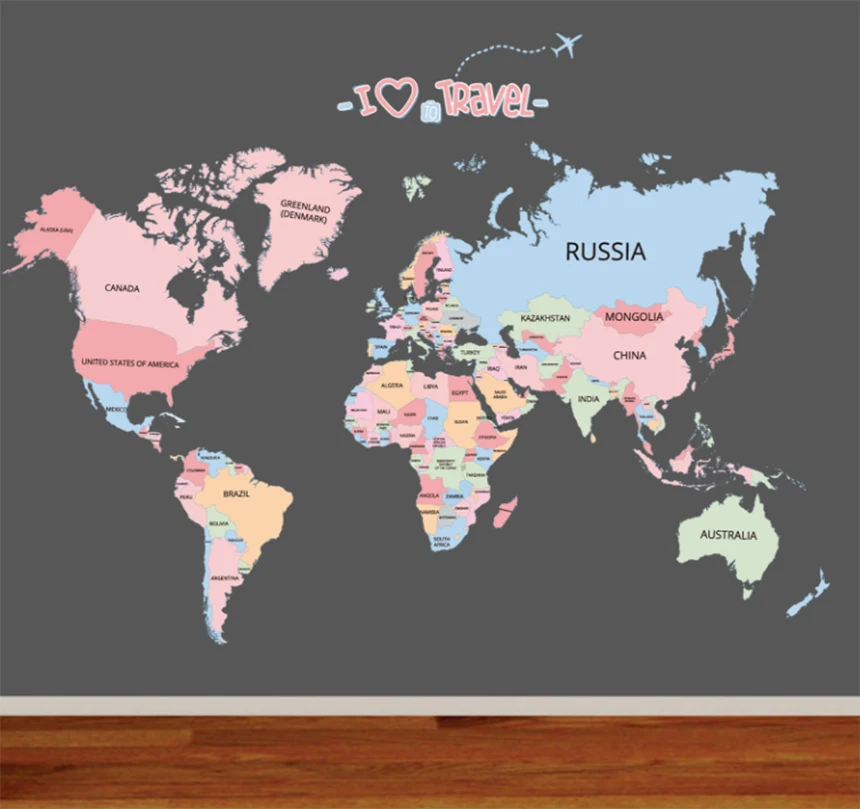 Цветные буквы, Карта мира, самодельные виниловые наклейки на стену ...