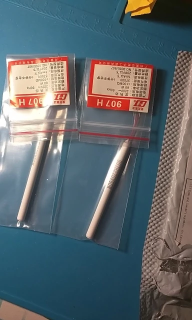 Заказ пришел достаточно быстро. Товар соответствует описанию. Нагреватели пришли целые, хотя упаковка не для хрупкого товара, обычный пупырчатый пакет. Количество как и должно быть - 2шт. Сопротивление нагревателя 880 и 900 Ом, сопротивление термопары 1,4 и 1,6 Ом. Размеры как в описании. Недостаток - короткие выводы.