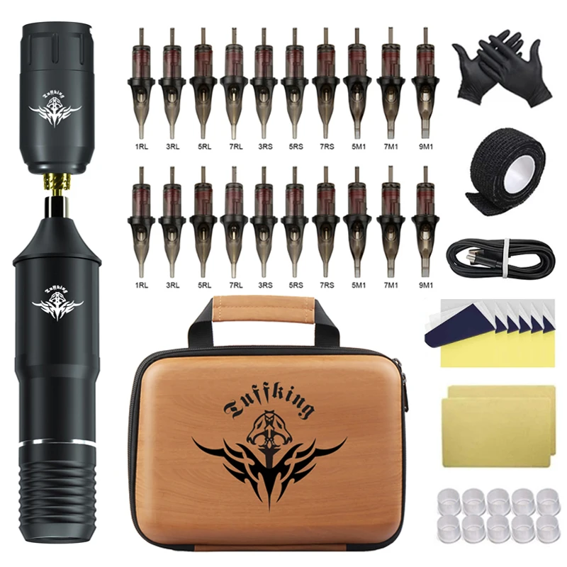 Беспроводной набор для тату-машинки, Вращающаяся ручка с картриджами и иглами, цветные чернила, аккумулятор, источник питания для тату, боди-арта