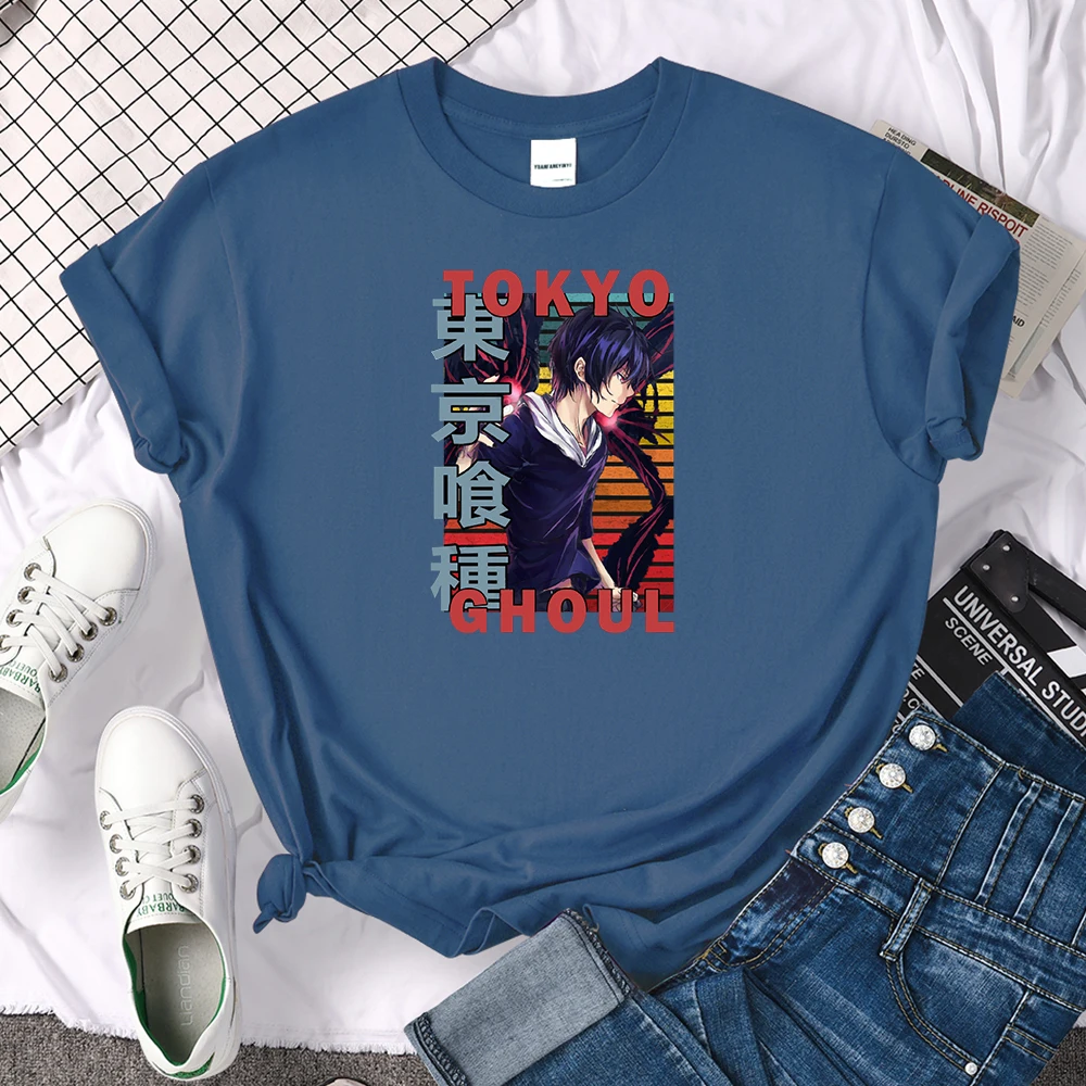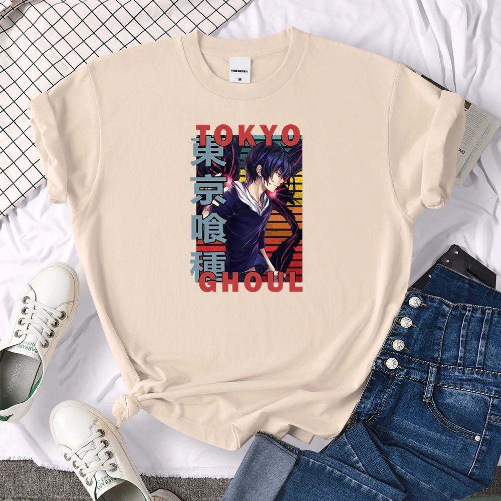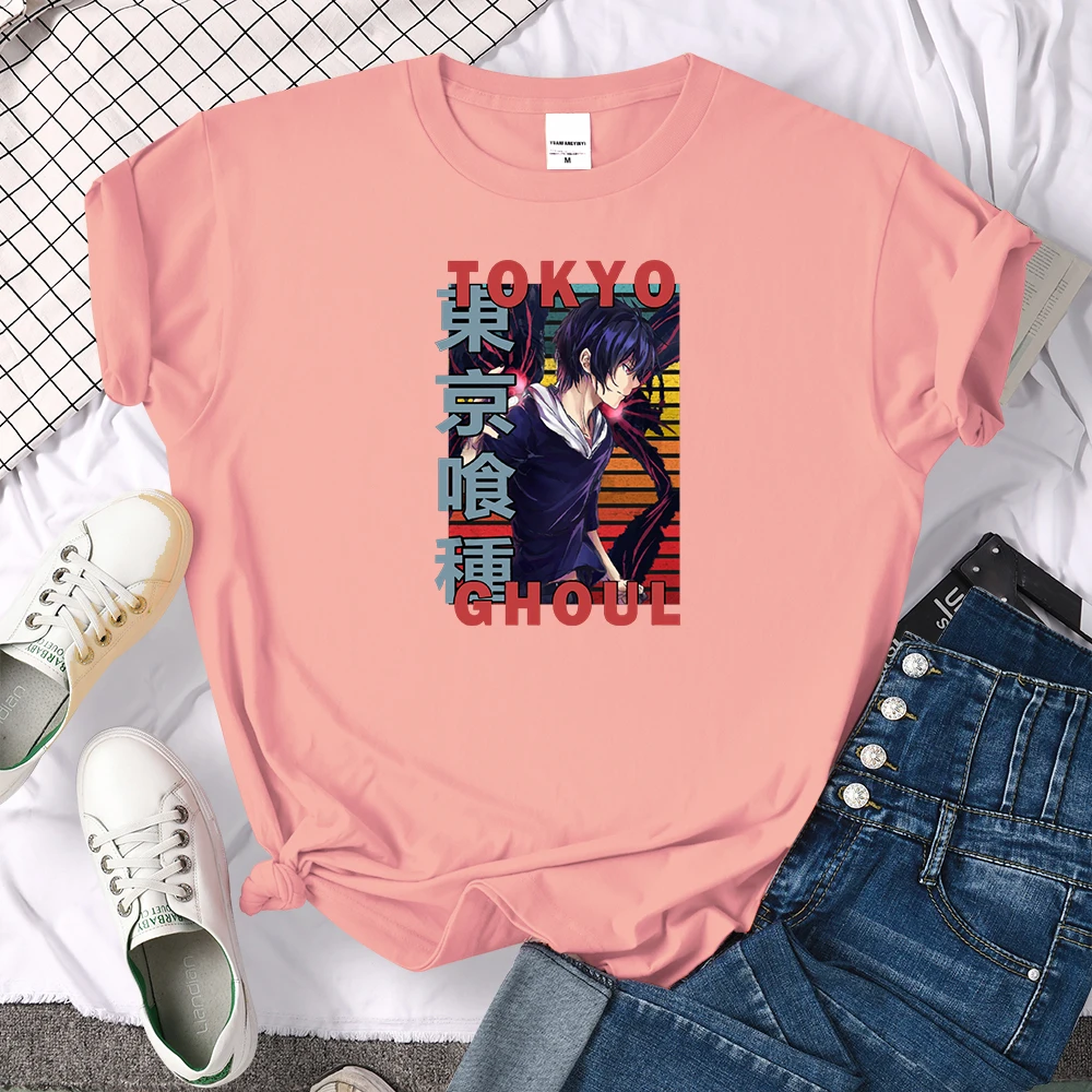 Футболка женская с принтом аниме Токио Гуль, облегающий топ с коротким рукавом, в японском стиле