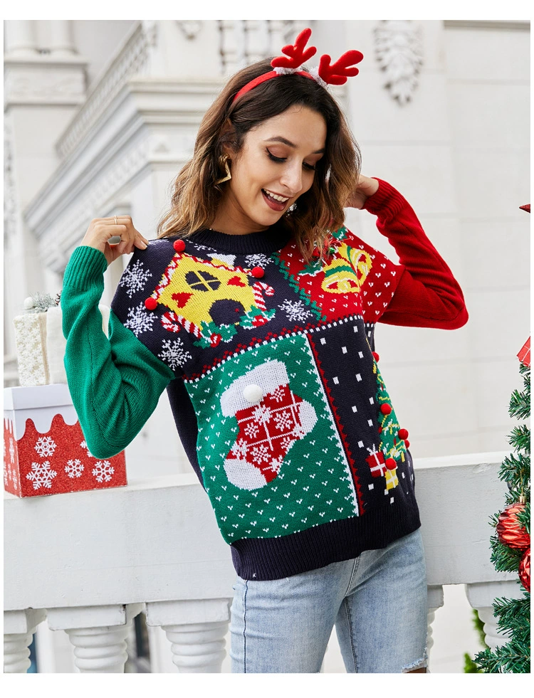 Свитер женский вязаный, с длинным рукавом, в виде снежинки, на Рождество, 2021