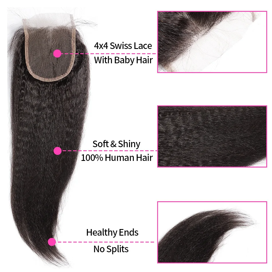 Кудрявые прямые кружевные волосы 8-22 дюйма 4x4, красивые бразильск...