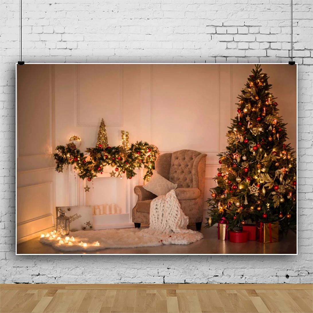 Laeacco белая винтажная стена Рождественская елка подарки диван день рождения портретный фон фотографический фон для фотостудии