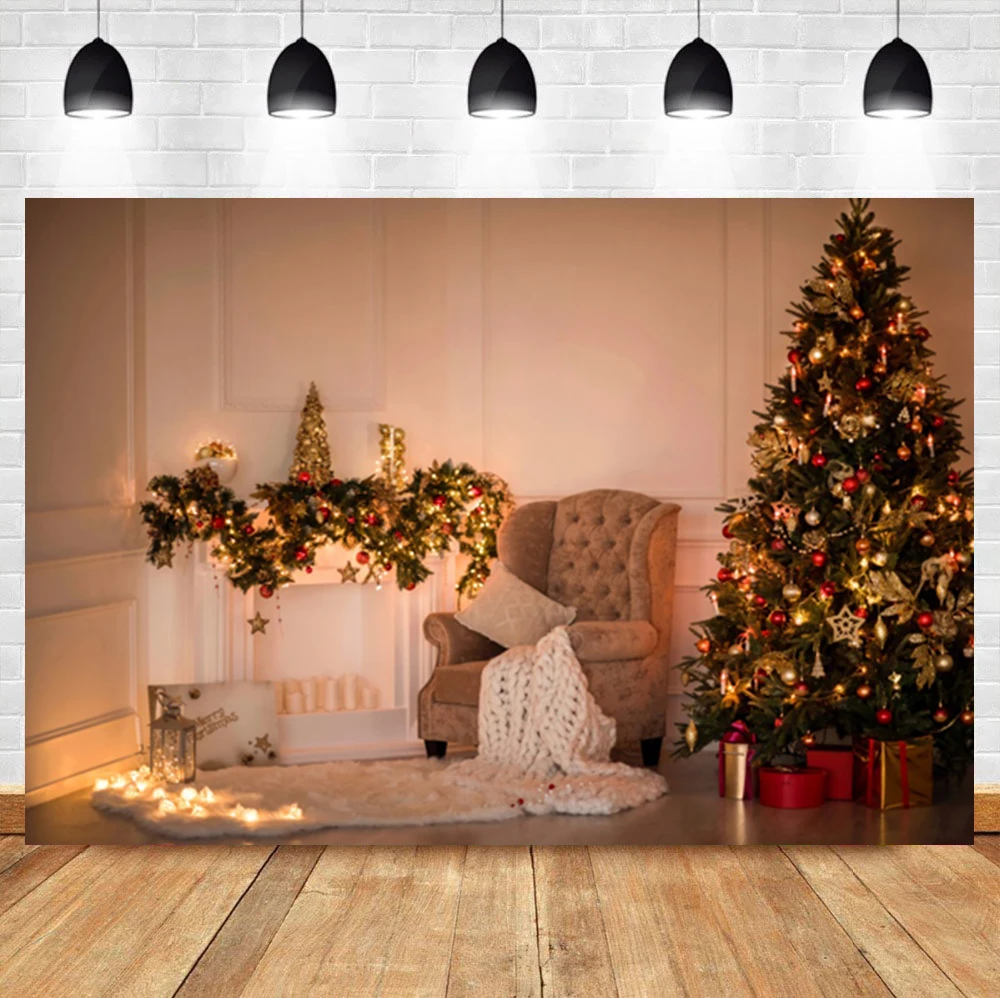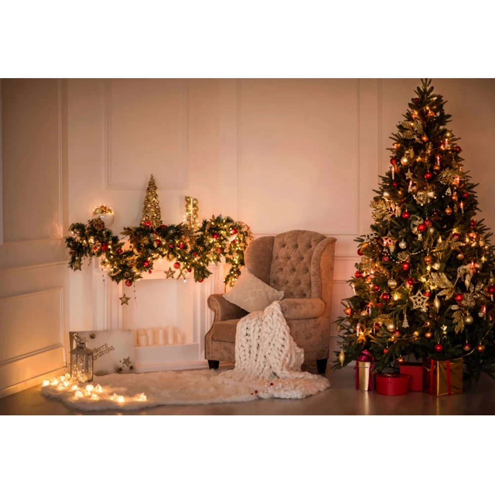 Laeacco Рождественская елка интерьер подарок камин День Рождения фо...
