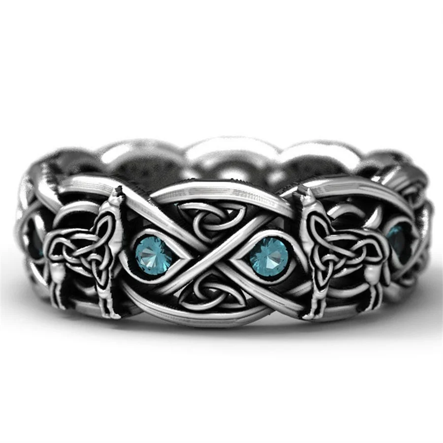 Ретро кельтский волк Тотем кольцо небесно-голубой камень хип-хоп рок для мужчин и женщин мужчин подарок панк вечерние ные ювелирные кольца