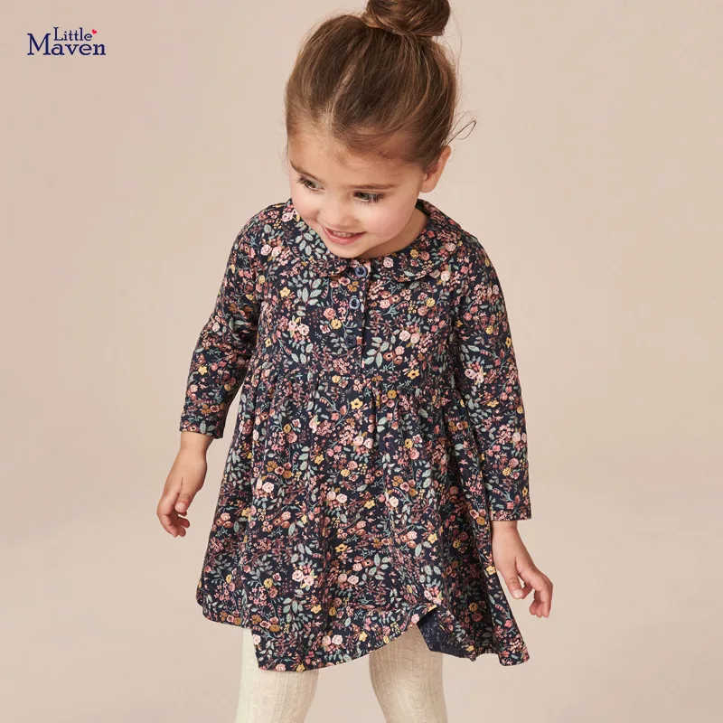 Little maven/платье для девочек мягкая и комфортная хлопковая одежда с длинными рукавами для маленьких девочек от 2 до 7 лет