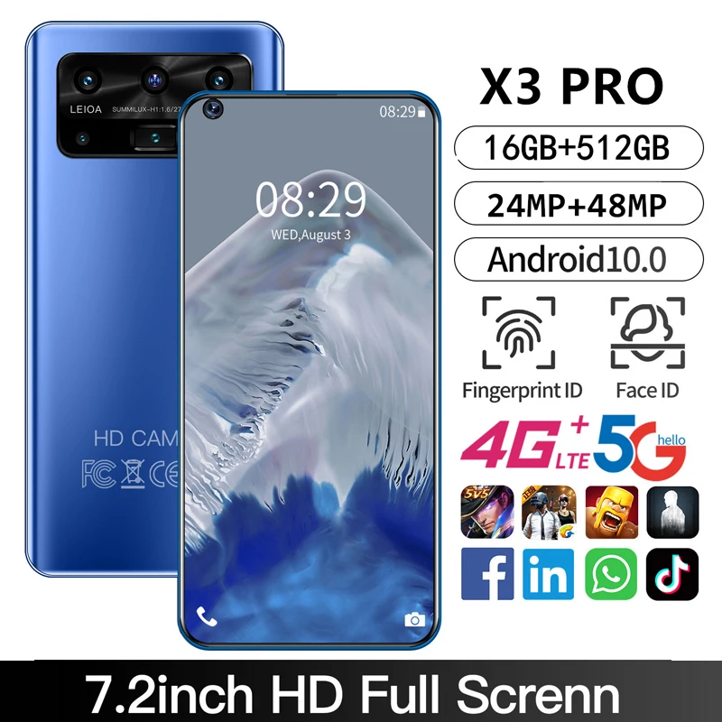 Смартфон X3 Pro, 16 ГБ, 512 ГБ, камера 48 МП, сотовый телефон с двумя SIM-картами, 5800 мач, 4G