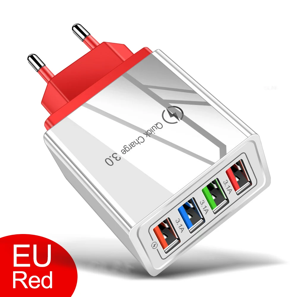 Цветное зарядное устройство с 4 USB-портами для зарядки в путешествиях