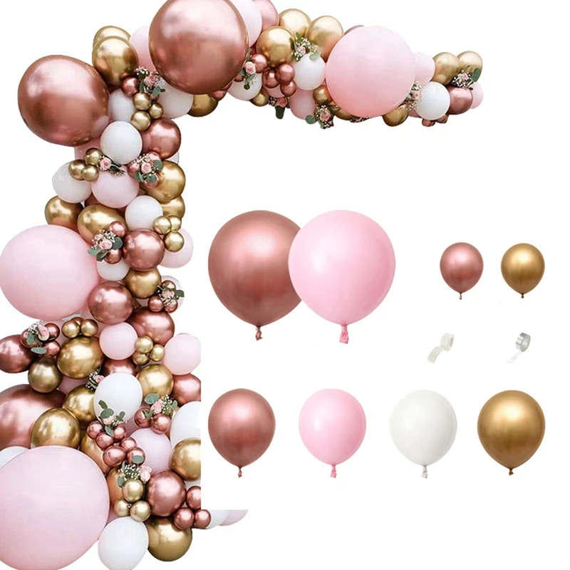 Гирлянда с воздушными шарами, ярко-розовый, белый, хромированный воздушный шар для свадебной вечеринки, Свадебный декор, украшение для вечеринки в честь будущей мамы