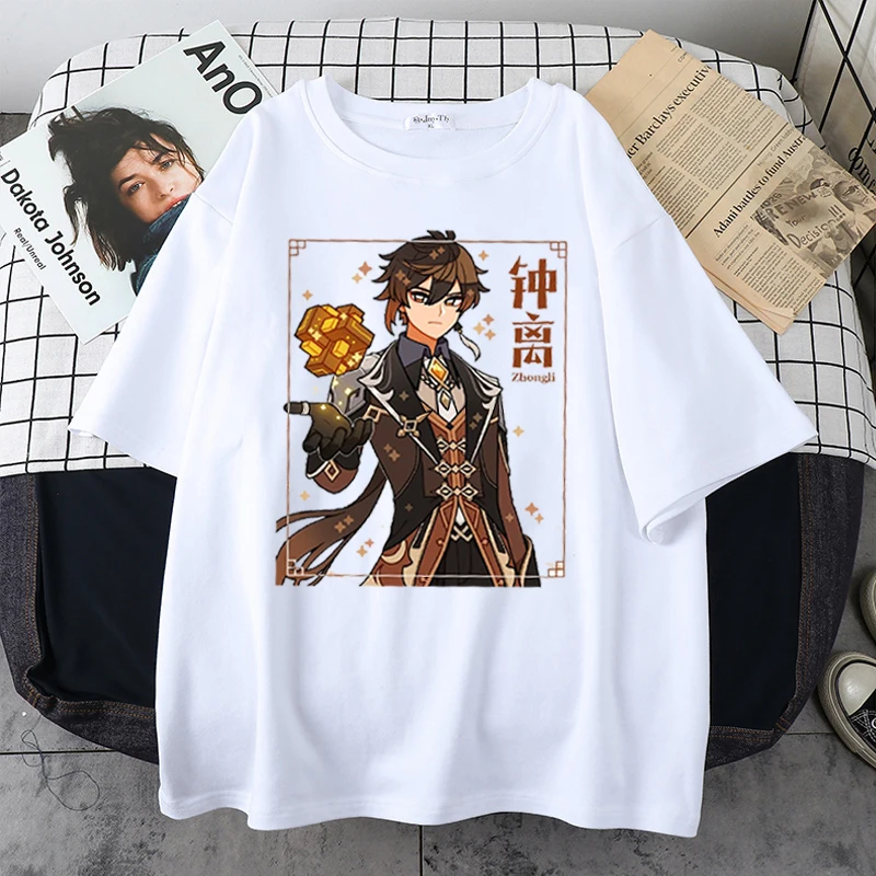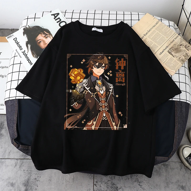 Футболка Zhong Li Genshin Impact для мужчин и женщин, хлопковая Модная рубашка, детские топы в стиле хип-хоп, футболки для девочек