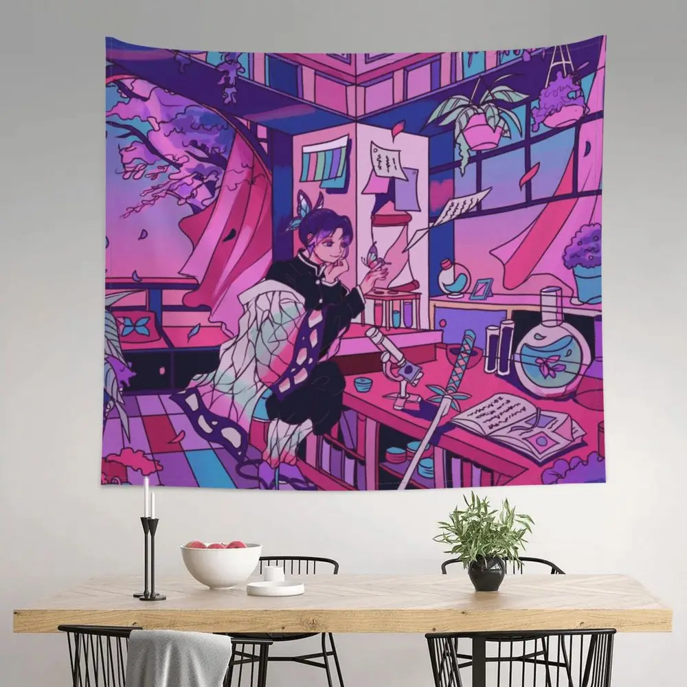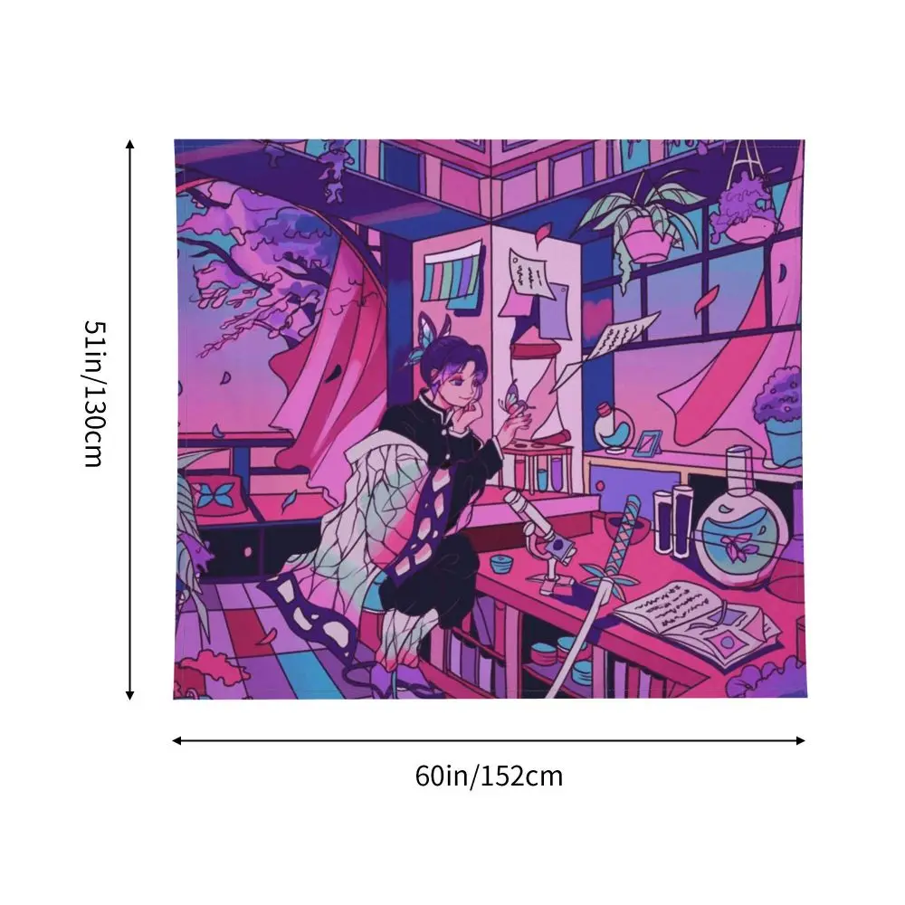 Гобелен хиппи из полиэстера для декора комнат Kochou Shinobu, одеяло с мандалой, рассекающий демонов, киметасу, хиппи