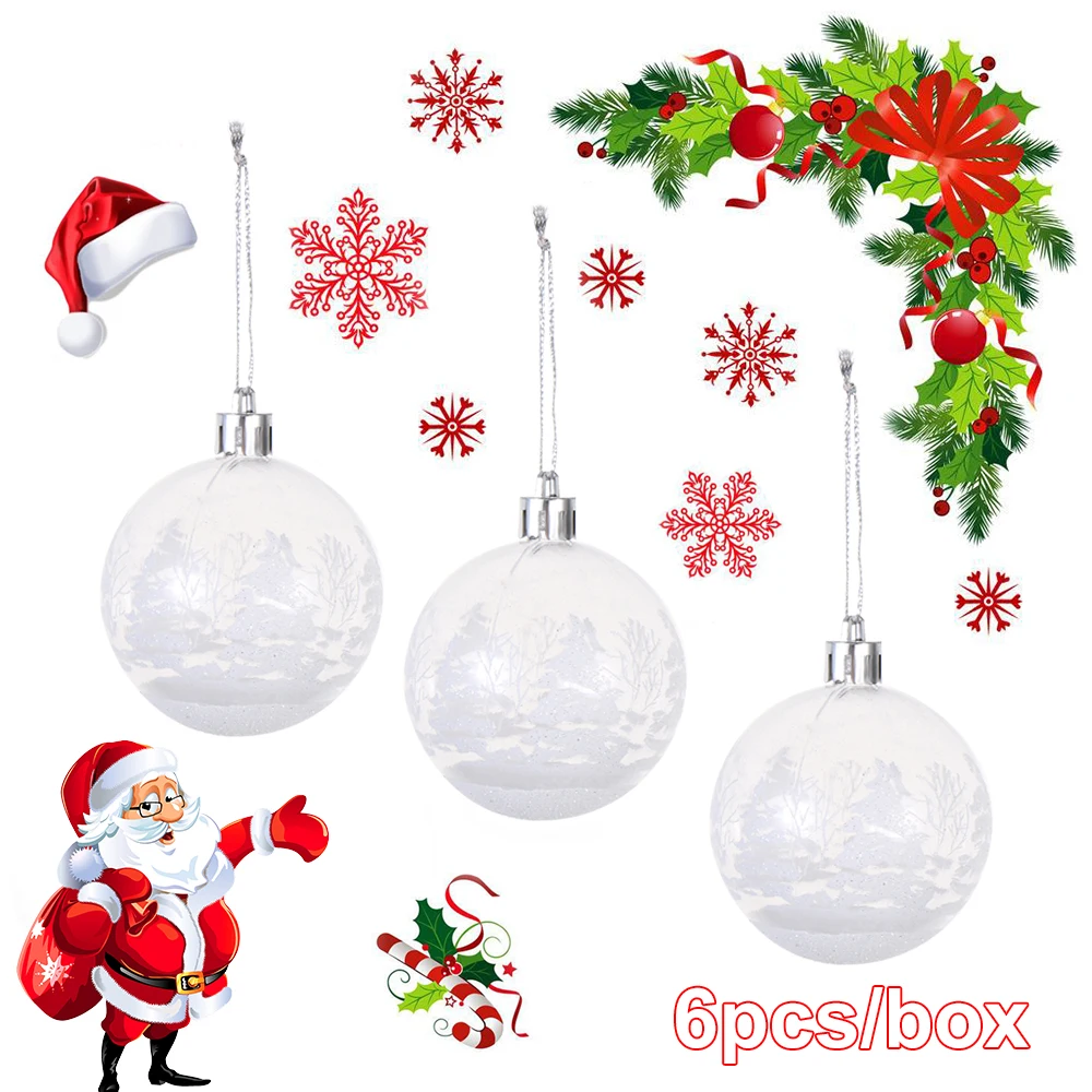 6 шт. белые пластиковые подвесные Подвески в виде снежного шара для украшения рождественской елки, домашние украшения для рождевечерние, подарочная упаковка для творчества