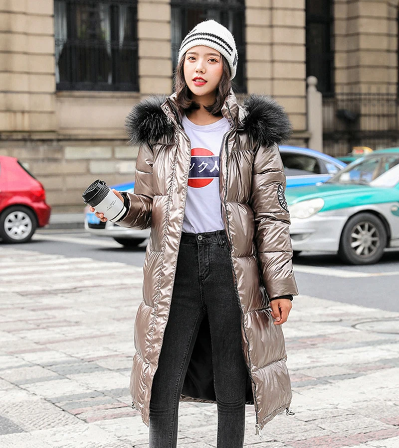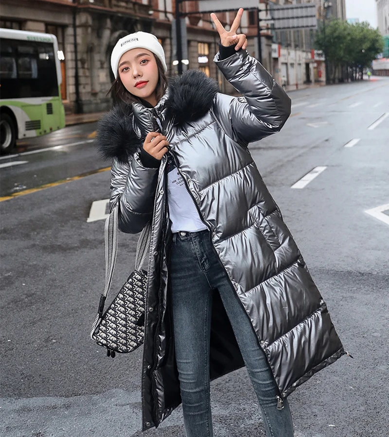 Женские Длинные парки, пальто, синие пуховые куртки, плотные повседневные с меховым эполетами, зимние женские пуховики 2021, однотонная верхняя одежда с капюшоном