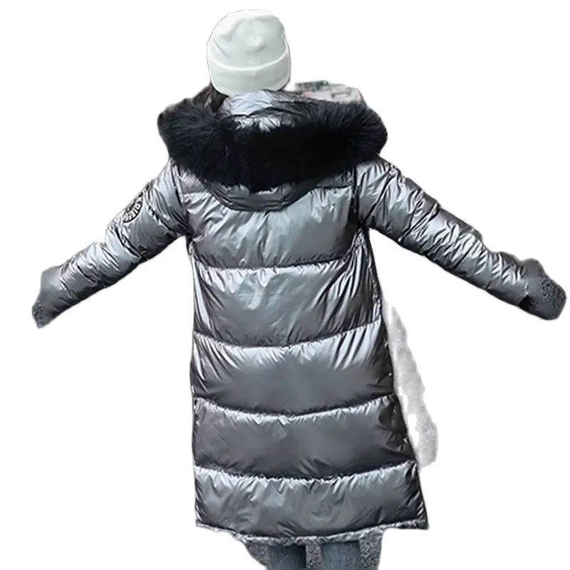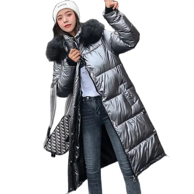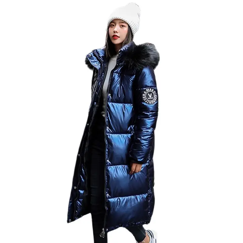 Женские длинные синие пуховики оверсайз, толстые повседневные пухов...