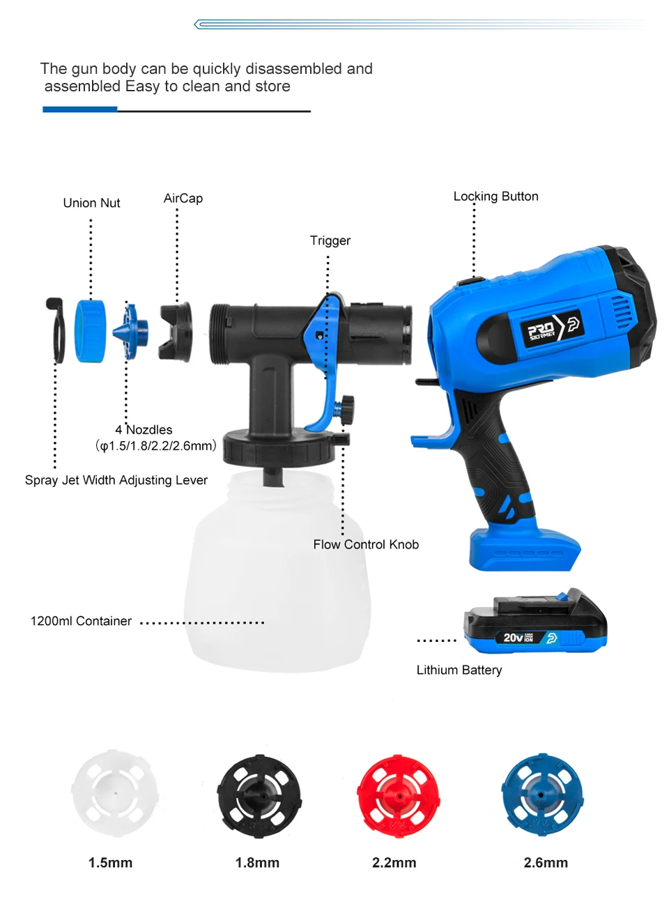 Электрический бесщеточный пистолет-распылитель 1200 мл HVLP Распылитель для дома с управлением потоком 4 сопла Простая очистка распылением PROSTORMER