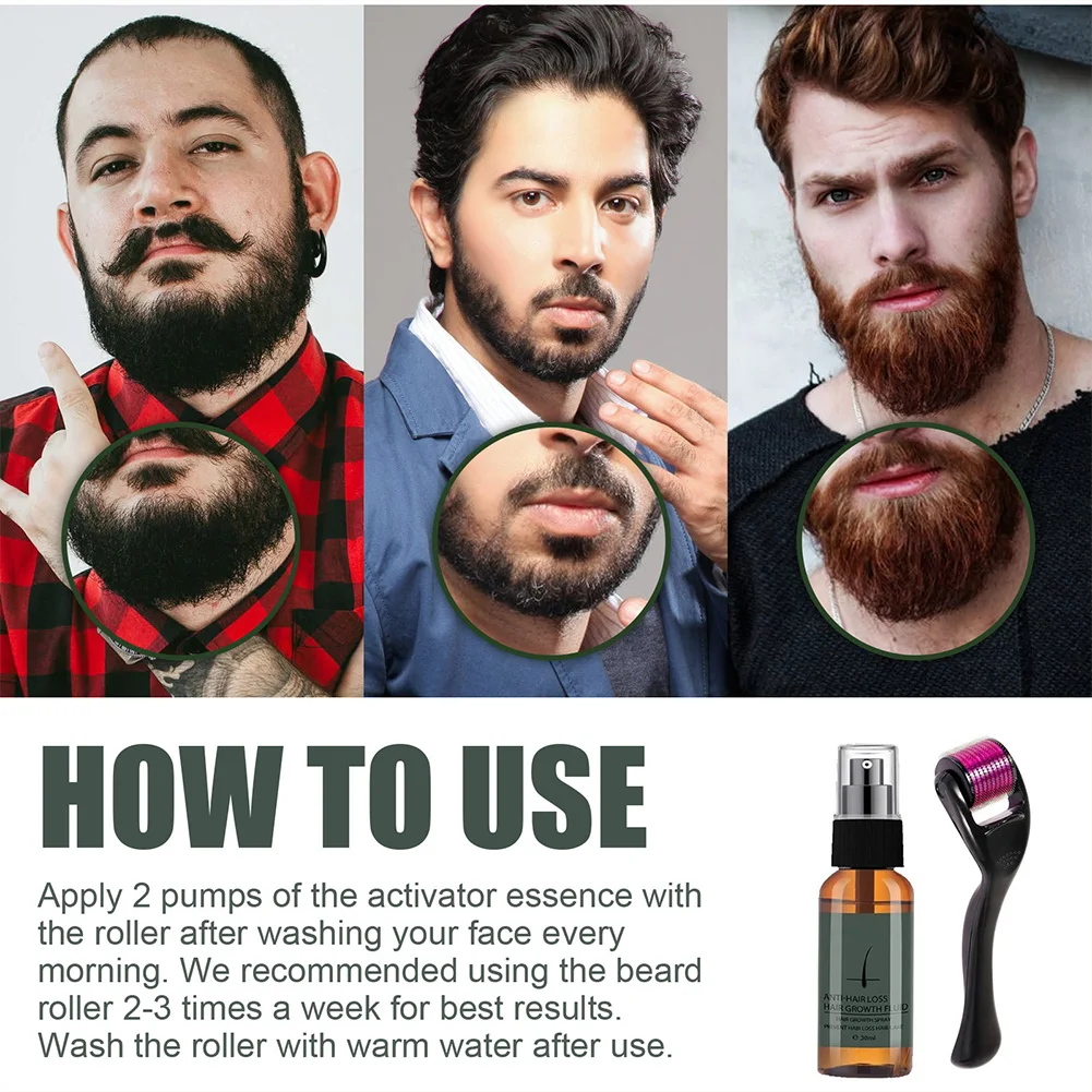 Очаровательный Набор роликов для роста бороды, набор для роста бороды, Мужская эссенция для роста бороды, питательный усилитель, спрей для бороды, уход за бородой