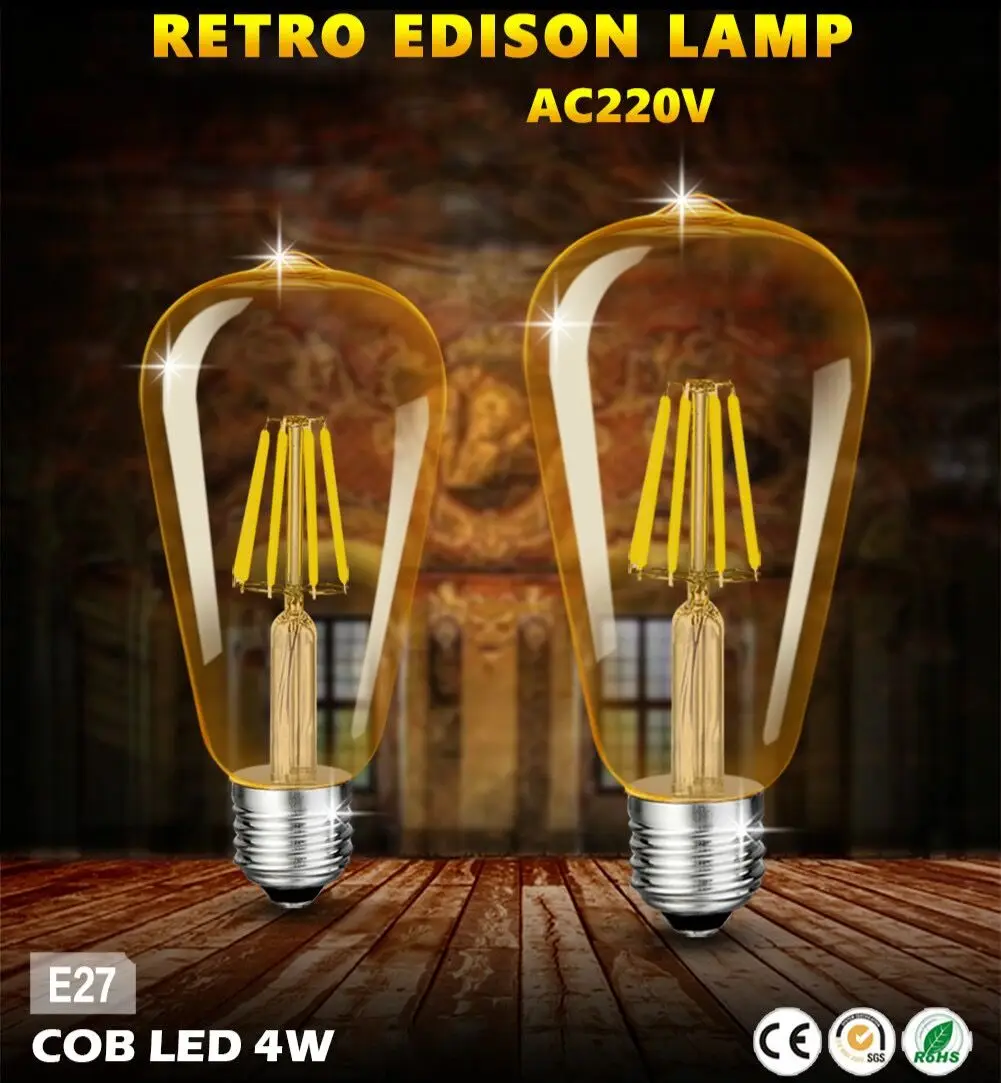 6 упаковок E27 ST64 Ретро Эдисон светильник 4 Вт 220 В винтажная лампа теплые белые лампы накаливания винтажная лампа домашний декор
