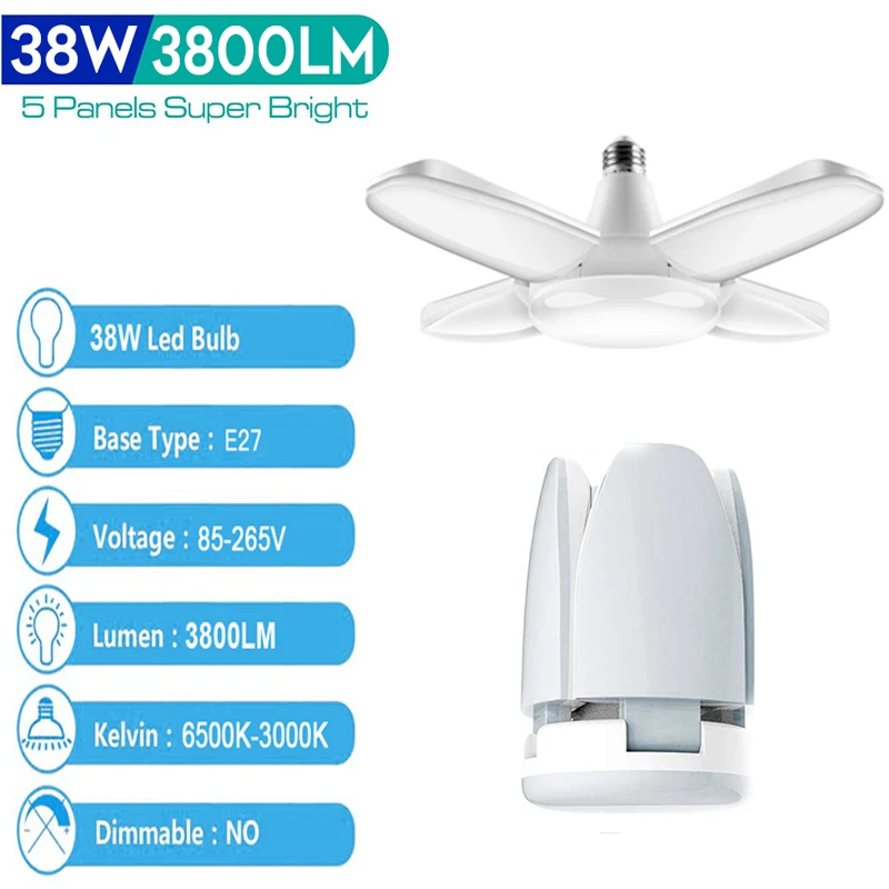 Складные гаражные светильники E27, 38 Вт, 85-265 в перем. Тока