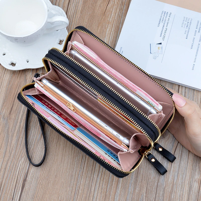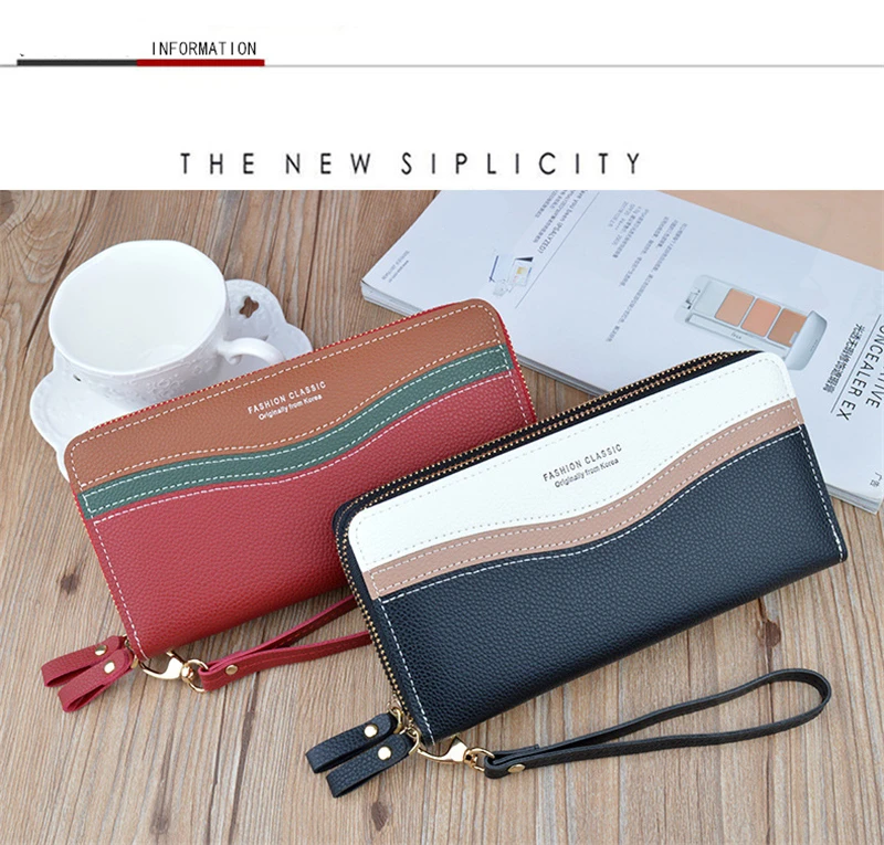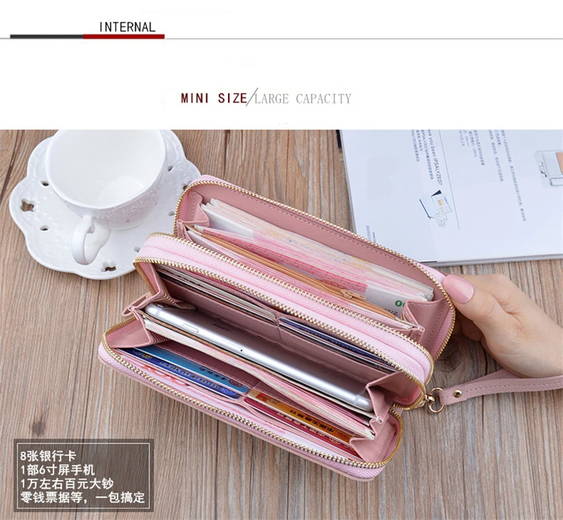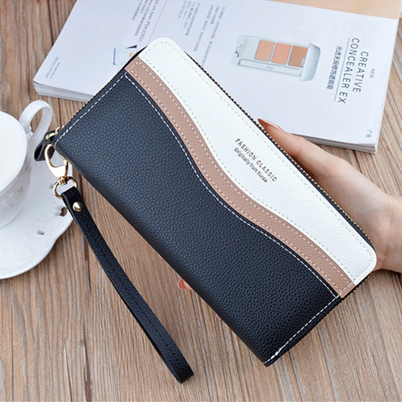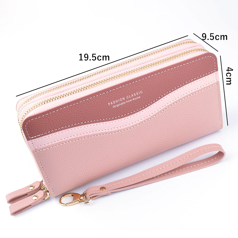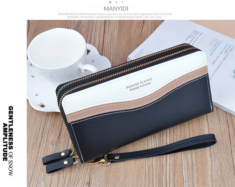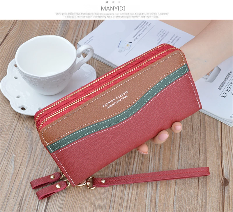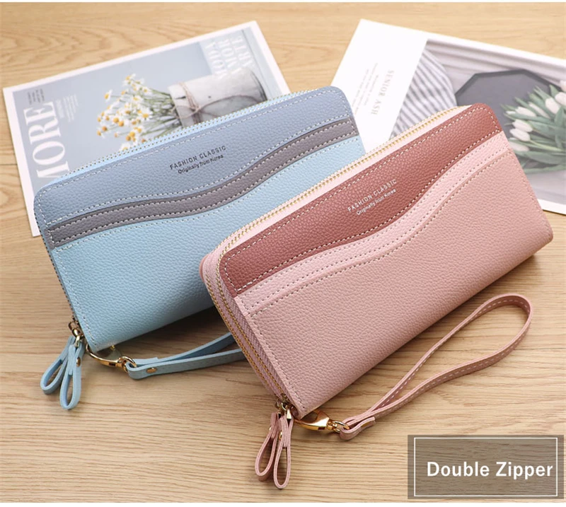 Женский Длинный кошелек на двойной молнии из искусственной кожи, повседневный сращивающийся вместительный Дамский клатч с держателем для карт, маленький бумажник