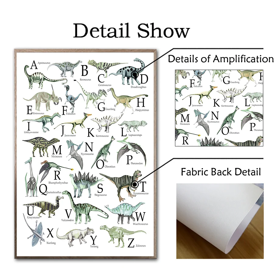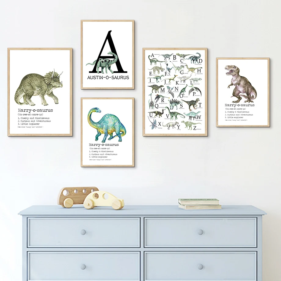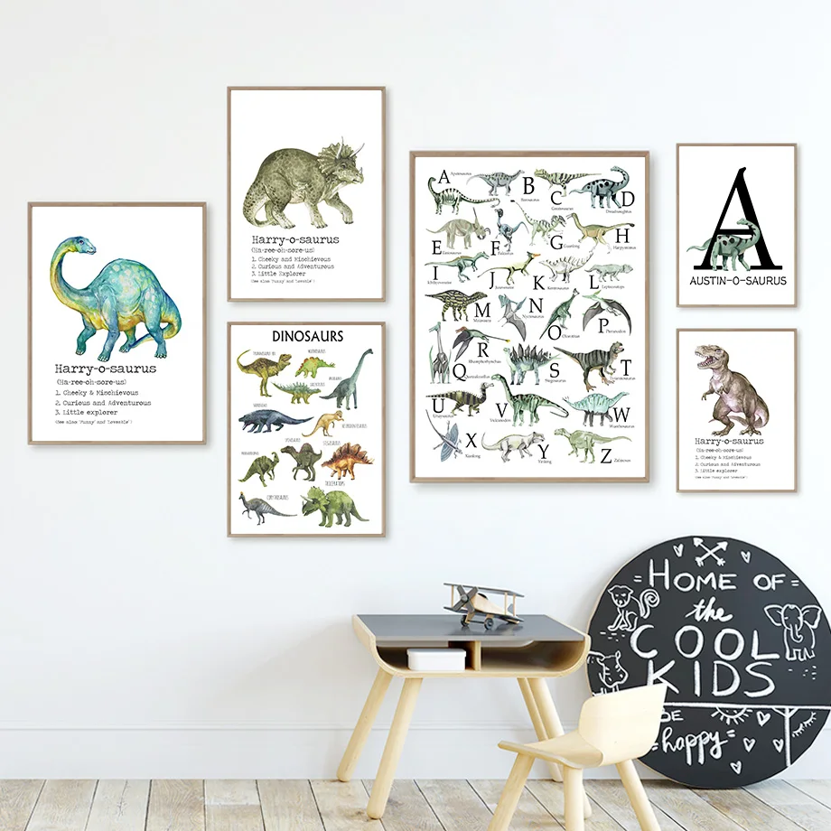 Мультяшный динозавр, карта алфавита, персонализированная детская настенная Картина на холсте, скандинавские плакаты и принты, настенные картины, декор детской комнаты