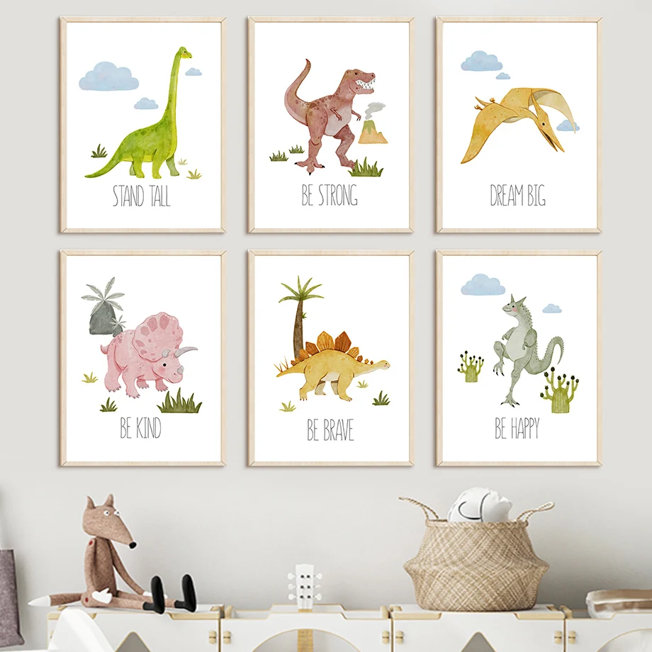 Настенная картина с цифрами, алфавитом, динозавром, мультяшными животными, детской, Настенная картина, скандинавские постеры и принты, настенные картины, декор для детской комнаты
