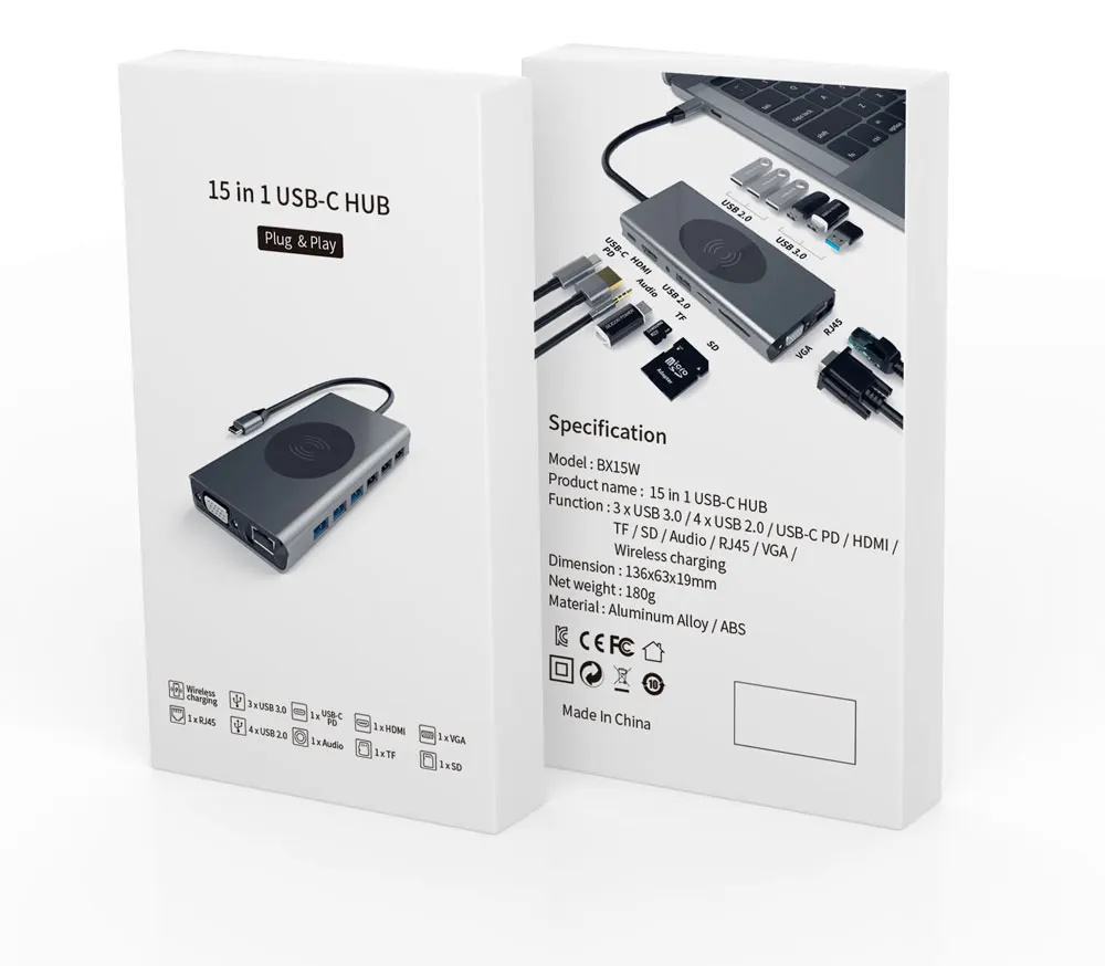 BX15W 15 In1 Тип C концентратор 4K 1080P, совместимому с HDMI + VGA...