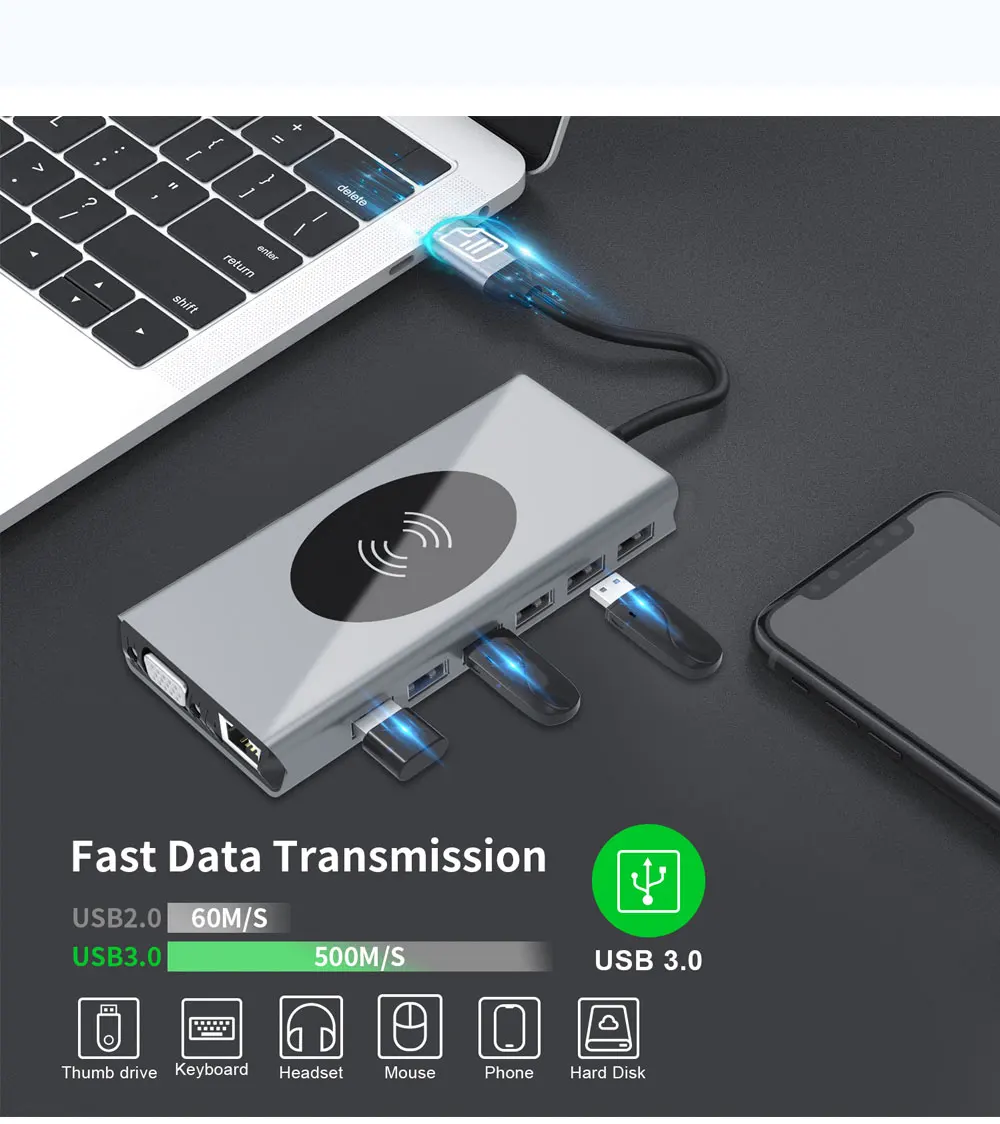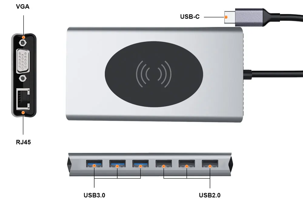 USB 3.1 Type C HUB с 4K Ultra HD RJ45 беспроводной зарядкой SDTF ка...