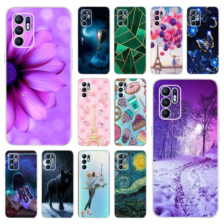 Для OPPO Reno 6 4G чехол для Reno 6 5G модные цветочные чехлы для телефонов с принтом чехол s Fundas для OPPO Reno6 CPH2235 CPH2251 мягкий бампер