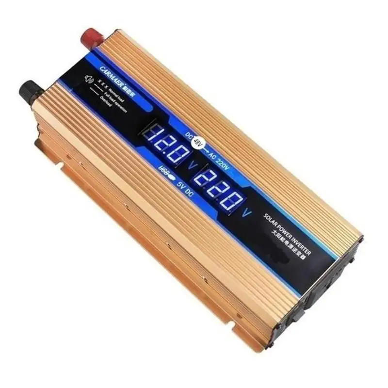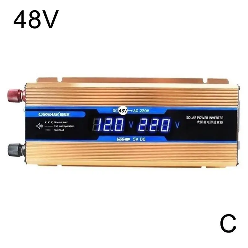 Характеристики:-Версия: от 12 В до 220 В, от 24 В до 220 В, от 48 В до 220 В, от 60 в до 220 В-Цвет: Золотой-Д * Ш * В: 17*10*5 см-Материал: алюминиевый сплав-Пиковая мощность: 2000 Вт-Непрерывная мощность: 1000 Вт-Цифровой дисплей: Входное/выходное напряжение-Входное напряжение: 12 В/24 В/48 В/60 В постоянного тока-Выходное напряжение: 220 В переменного тока-Эффективность преобразования: более 90%-Форма волны: модифицированная Синусоидальная волна-Область применения: бытовые электрические приборы и т. Д.Особенности:-Противоударная функция-Функция защиты от перенапряжения-Функция защиты от перегрузки-Функция защиты от перегрузки по току-Функция защиты от перегрева-Функция защиты от короткого замыкания-Функция отображения входного/выходного напряжения-Держите ваши устройства и автомобиль в безопасности-Встроенный вентилятор охлаждения для продления срока службы и безопасного использования-Умный размер, светильник и совместимость, низкий уровень шума и отсутствие загрязнения-Идеально подходит для питания смартфонов, ноутбуков, планшетов, gps-устройств, телевизоров, зарядных устройств, dvd-плееров, MP3-плееров, оборудования для кемпинга и мобильного офисного оборудования, полевого освещения и т. д.Посылка включает в себя:-1 солнечный инвертор-1 пара кабеля с зажимом-Руководство пользователя на английском языке-1 шт.