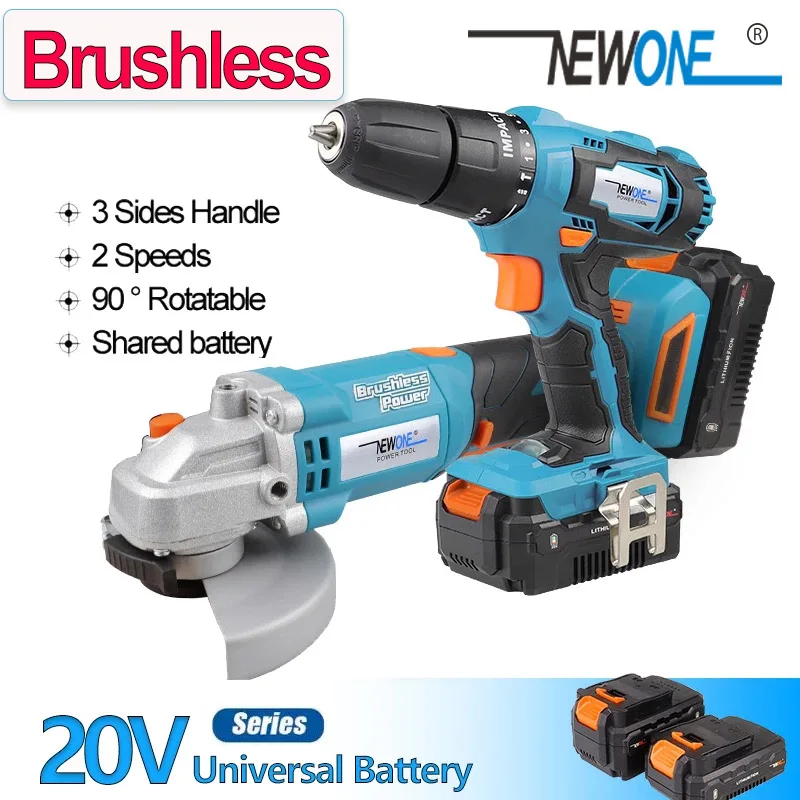 Аккумуляторная ударная дрель NEWONE, бесщеточный угловой шлифовальн...