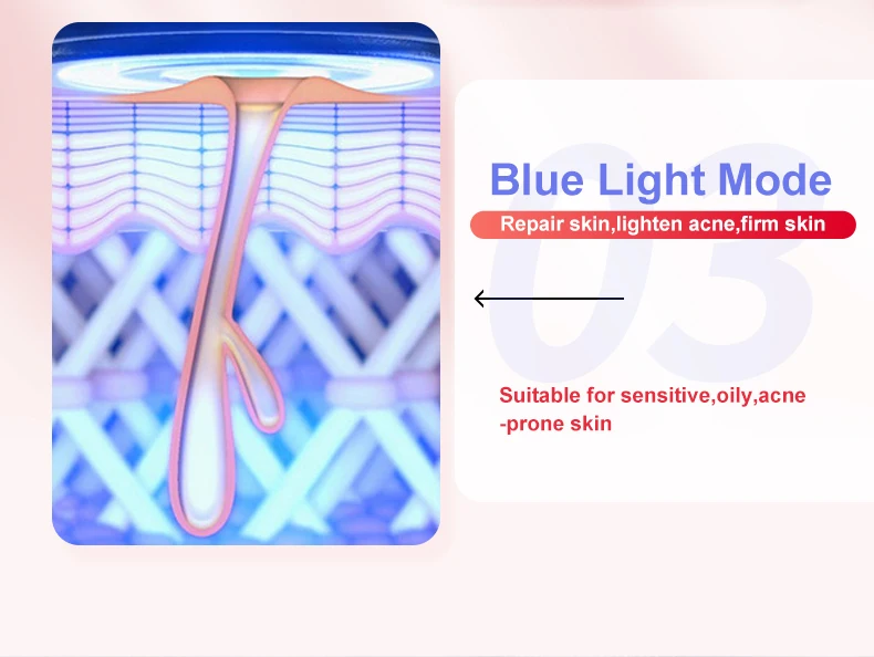 * Синий светильник длиной волны 415 нм оказывает быстрое противовоспалительное действие, уменьшая Живучесть кожного сала, устраняет акне bacilli для удаления акне и Волка, улучшает жирную кожу.