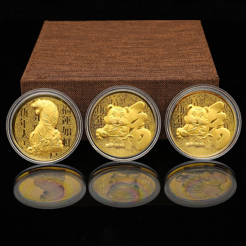 Оригинальные памятные поделки 2022 года, новый год Тигра в Китае, украшение из монет