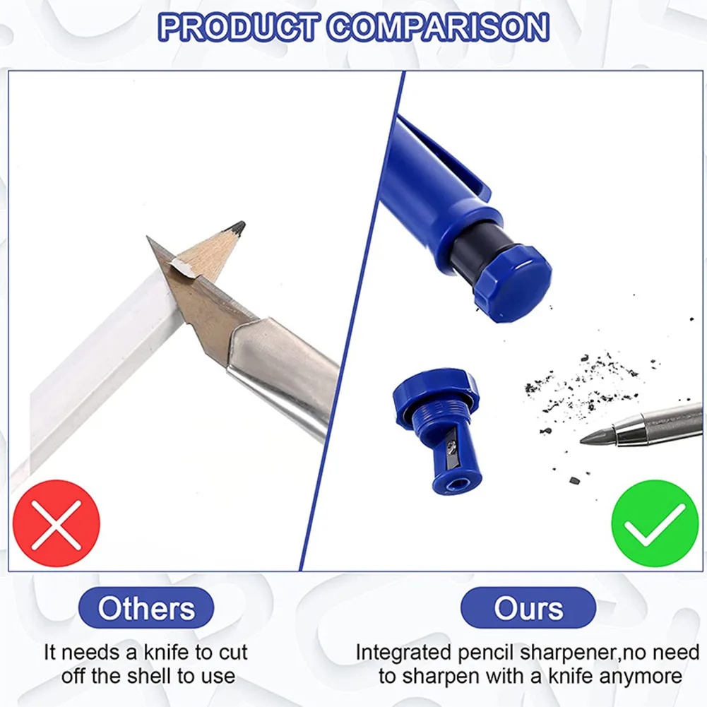 Твердый плотничный карандаш, заправляемая свинцовая конструкция, встроенная точилка для глубоких отверстий, механический маркер, деревообрабатывающая мастерская
