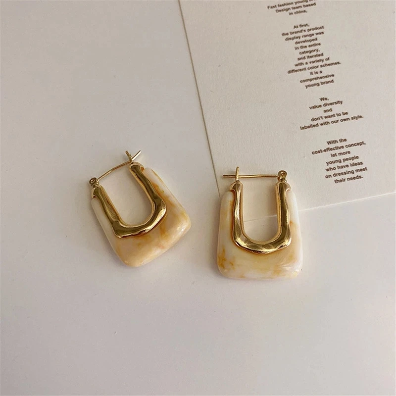 Новинка 2021, модные Прозрачные Серьги-кольца из смолы для женщин и девушек, геометрические металлические акриловые серьги неправильной геометрической формы, бижутерия для вечеринки