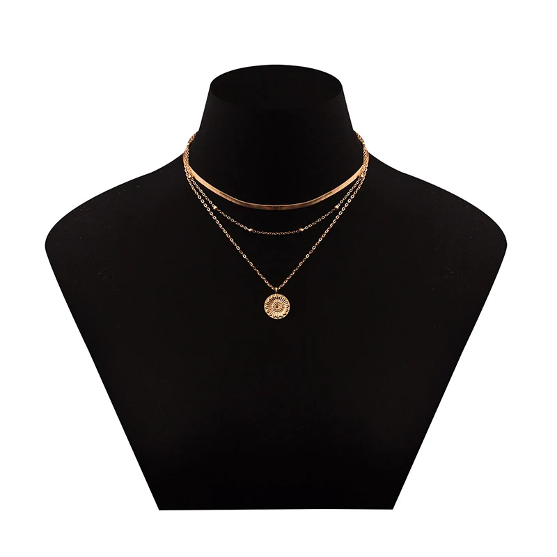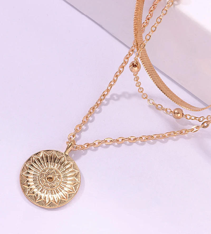 Женское многослойное ожерелье с круглым кулоном в стиле ретро