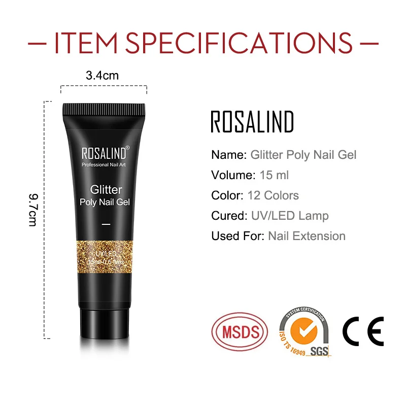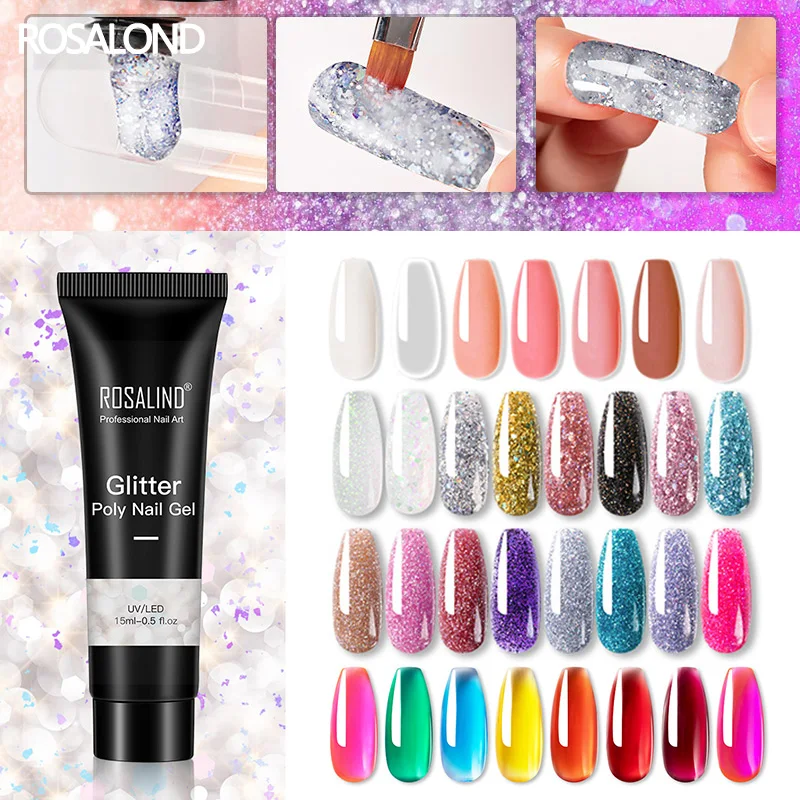 Полимерный гель для наращивания ногтей ROSALIND, 15 мл, Блестящий цветной акриловый гель для быстрого наращивания ногтей, маникюрный гель для ногтей